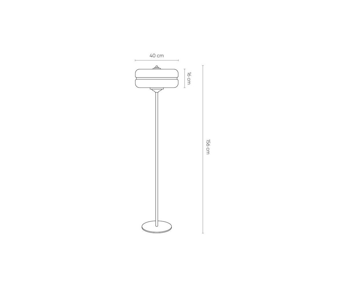 Lámpara de suelo inspirada en un diseño de Robbie Llewellyn y Adam Yeats. Fabricada en acero terminación dorado y cristal templado opal blanco. La colección incluye la lámpara de techo y sobremesa. Modelo de bombilla E27. Cable de 150cm. Réplica exacta con materiales originales de máxima calidad.