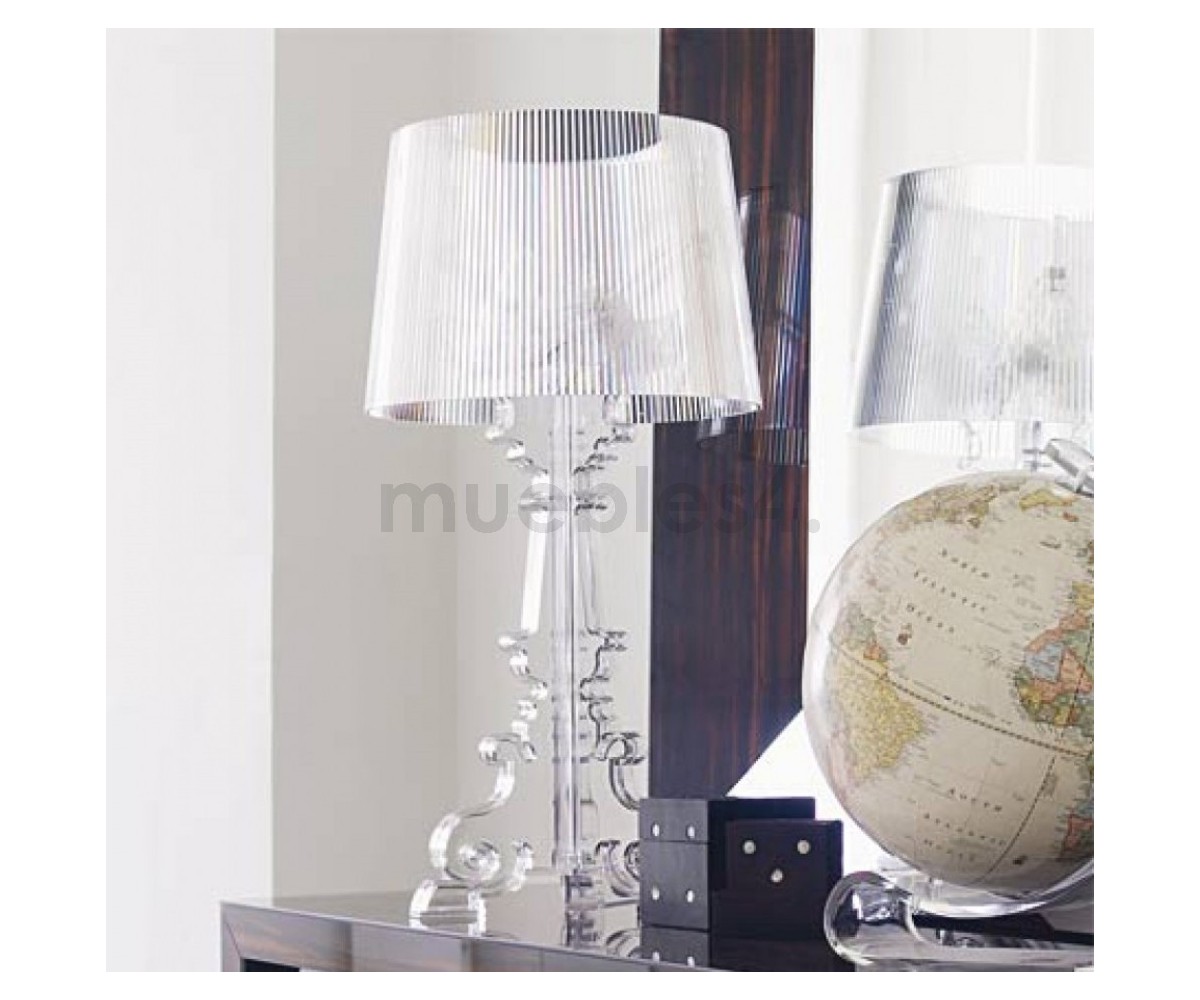 Lámpara de sobremesa, inspirada en un diseño de Ferrucico Laviani. Fabricada en policarbonato transparete, modelo de bombilla E27. Réplica exacta con materiales originales de máxima calidad.