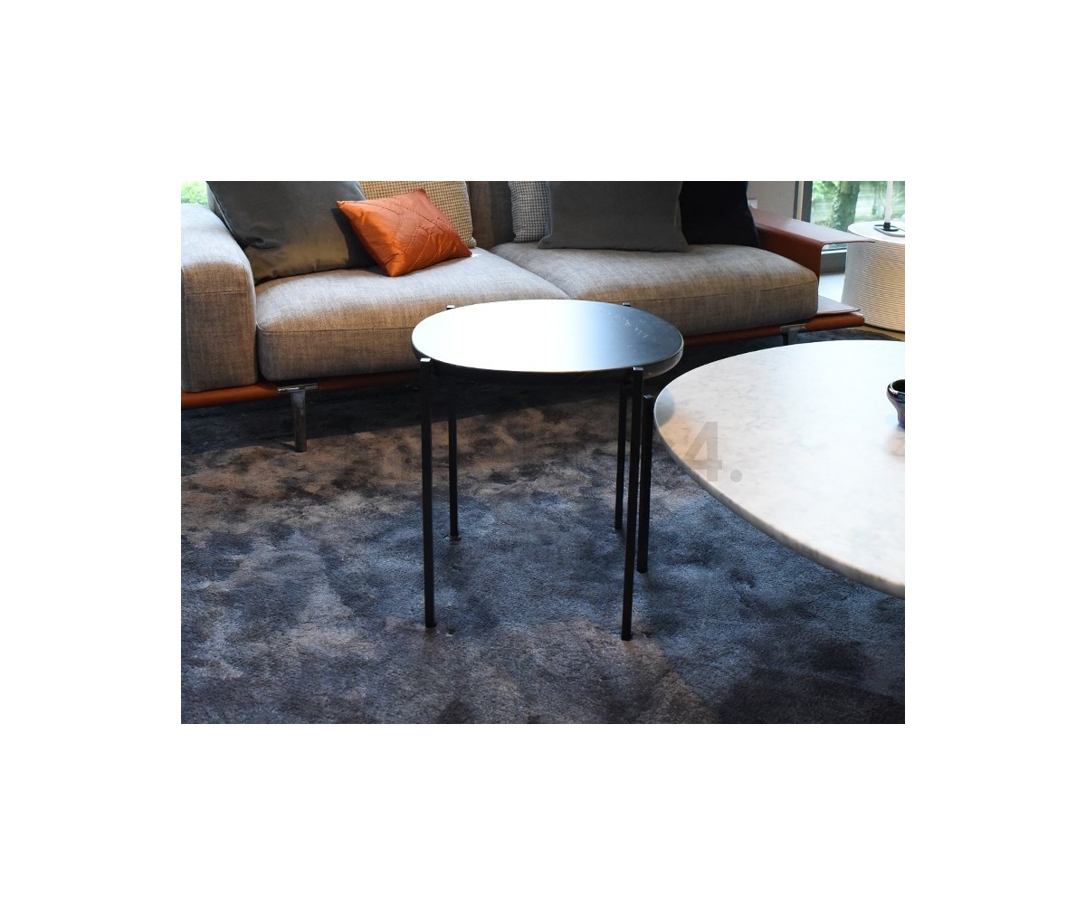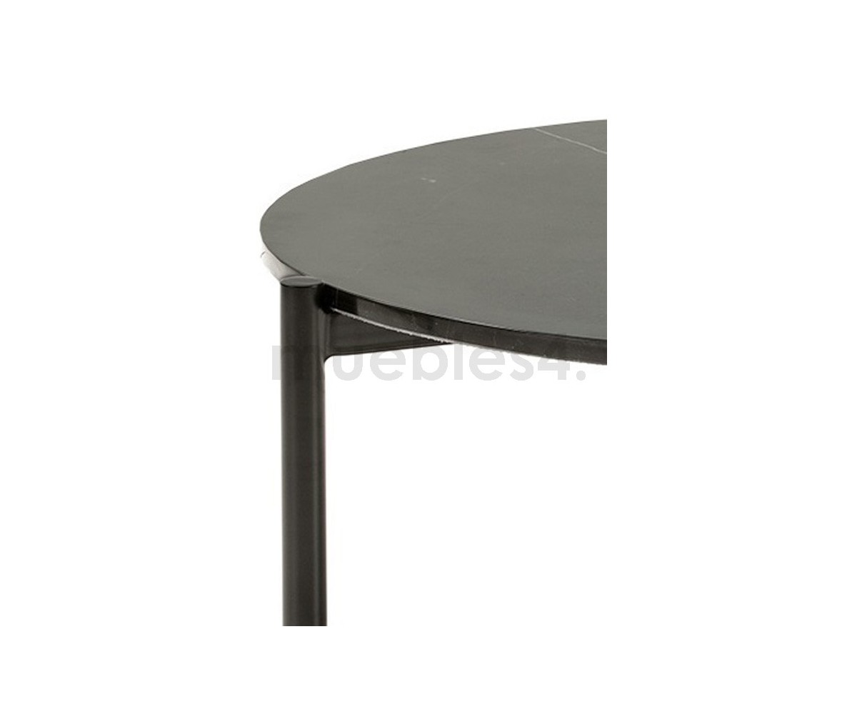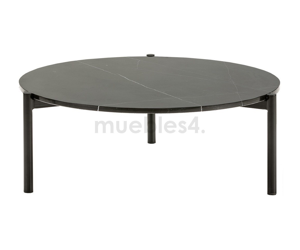 Mesa de centro Italiana inspirada en un diseño Federica Capitani. Estructura fabricada en acero tubular con triple lacado color negro, sobre circular en granito color negro. También disponible en mesa auxiliar. Réplica exacta con materiales originales de máxima calidad.