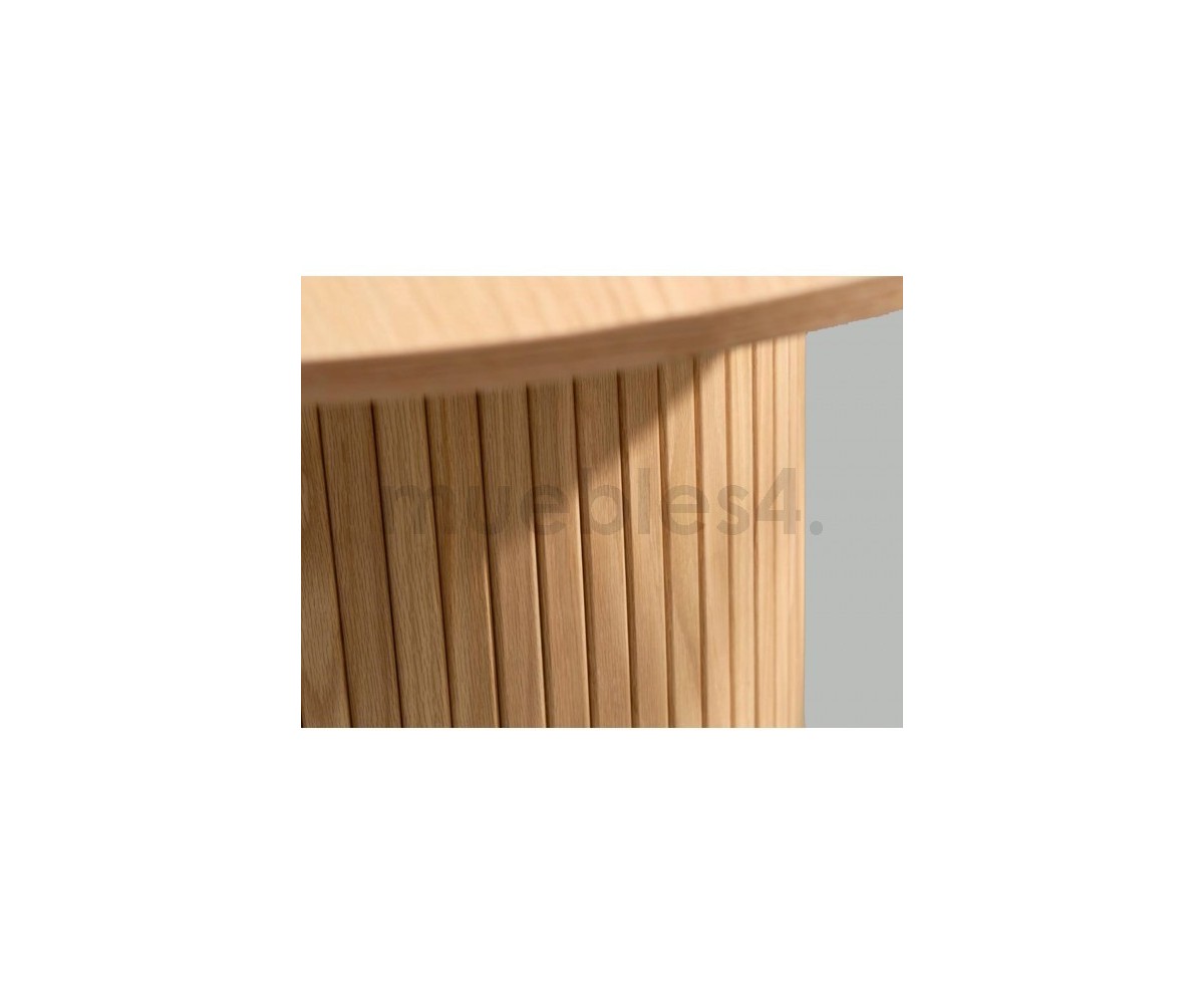 Mesa centro o auxiliar circular inspirada en un diseño de Space Copenhagen. Resultado de una elegante serie de mesas con claras referencias a la carpintería tradicional danesa. Mesas redondas orgánicas para espacios tanto domésticos como públicos.