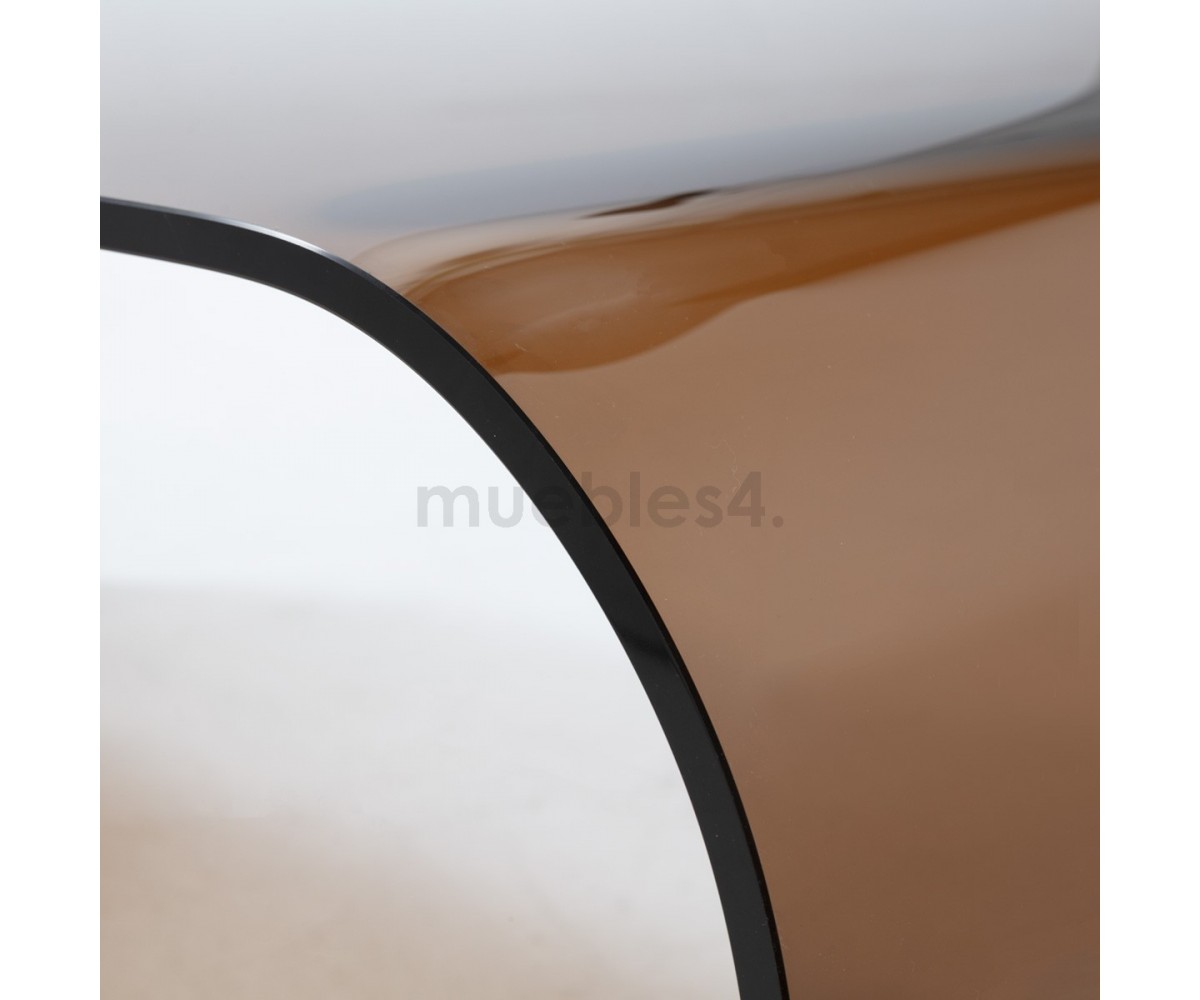 Mesa de centro inspirada en un diseño de Pietro Chiesa. Un extraordinario objeto de diseño que se distingue por sus líneas esenciales y su elegancia. Se obtiene plegando un único cristal de 15 mm de grosor con un acabado pulido. Disponemos de un gran catálogo de mesas de vidrio de Pietro Chiesa, tanto mesas de centro, como auxiliares.