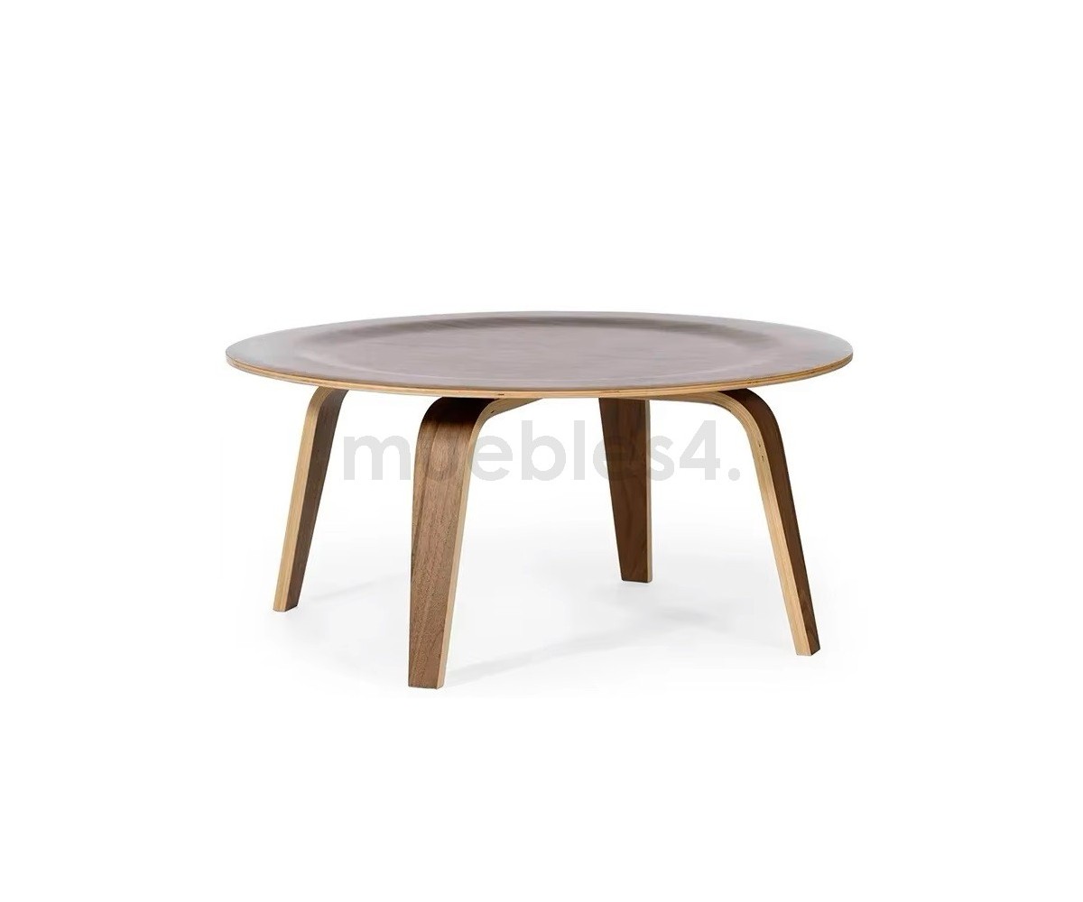 Mesa de centro circular inspirada en un diseño de Charles y Ray Eames. Creada con la innovadora técnica de moldear chapas de madera contrachapada livianas en formas suavemente curvas Y patas de madera curvadas son un ejemplo elocuente del diseño temprano de los Eames. Esta mesa es una pieza central sorprendentemente simple en cualquier espacio.