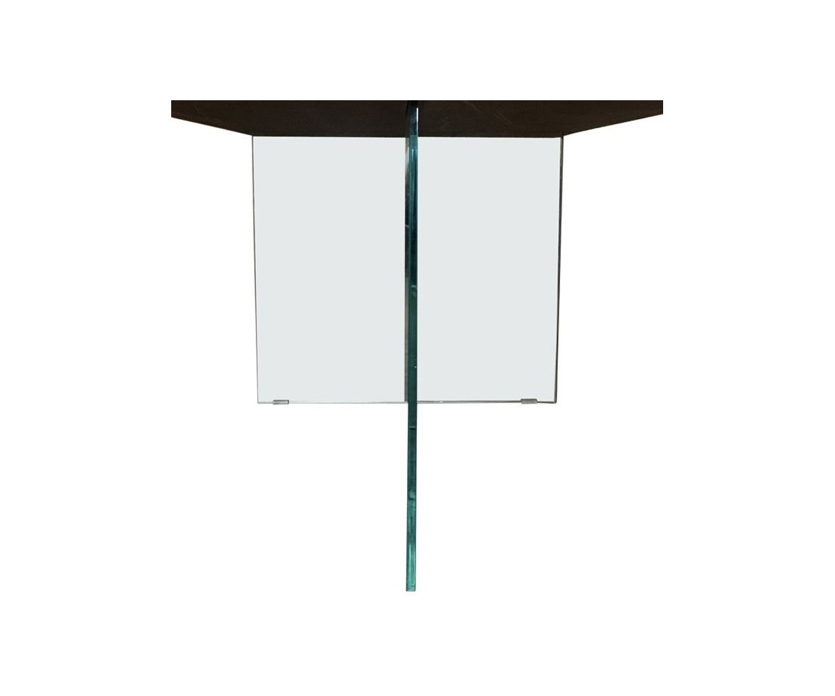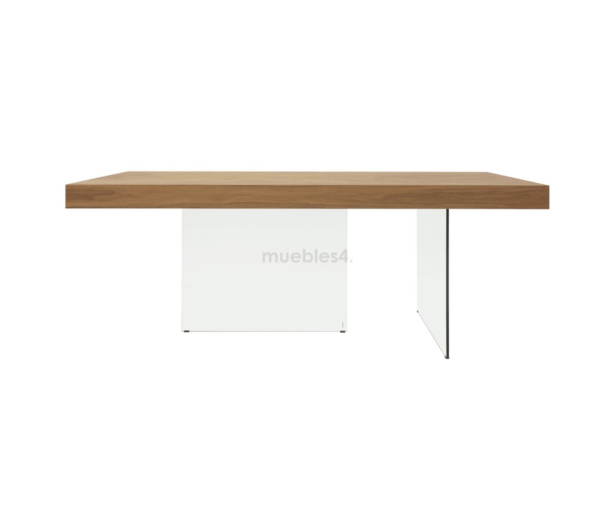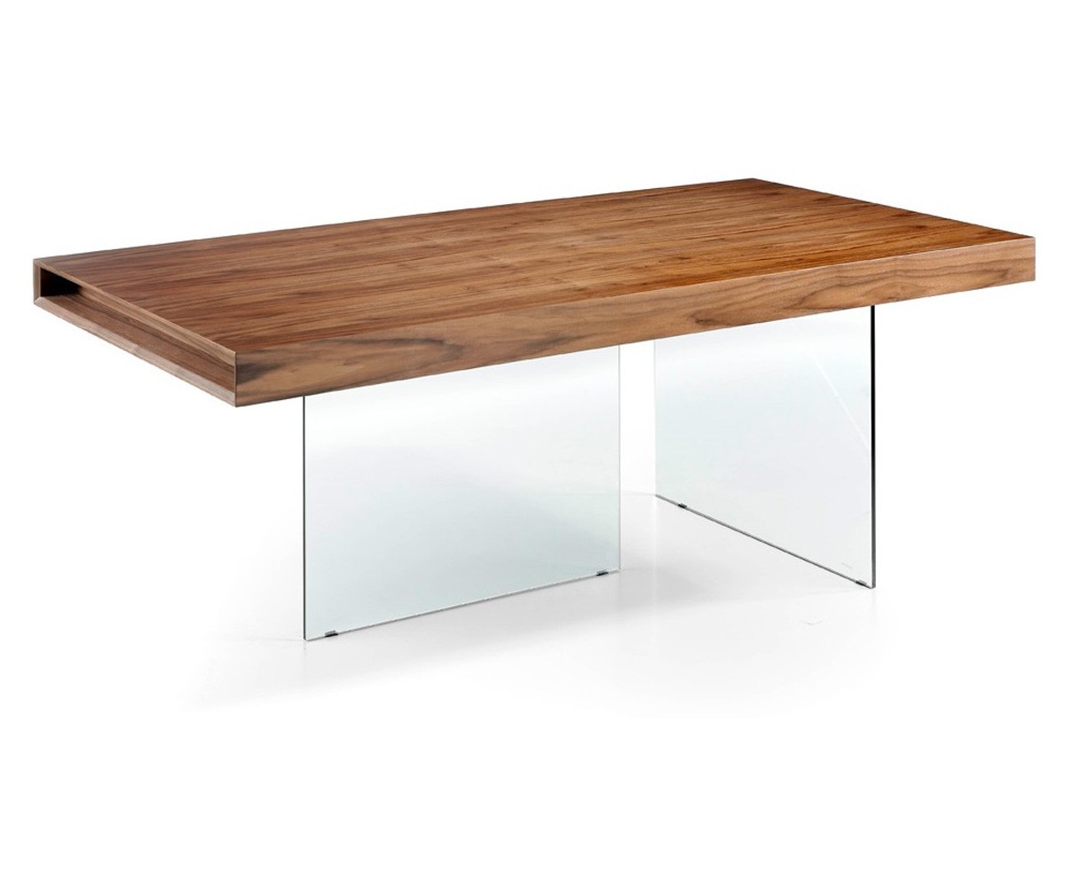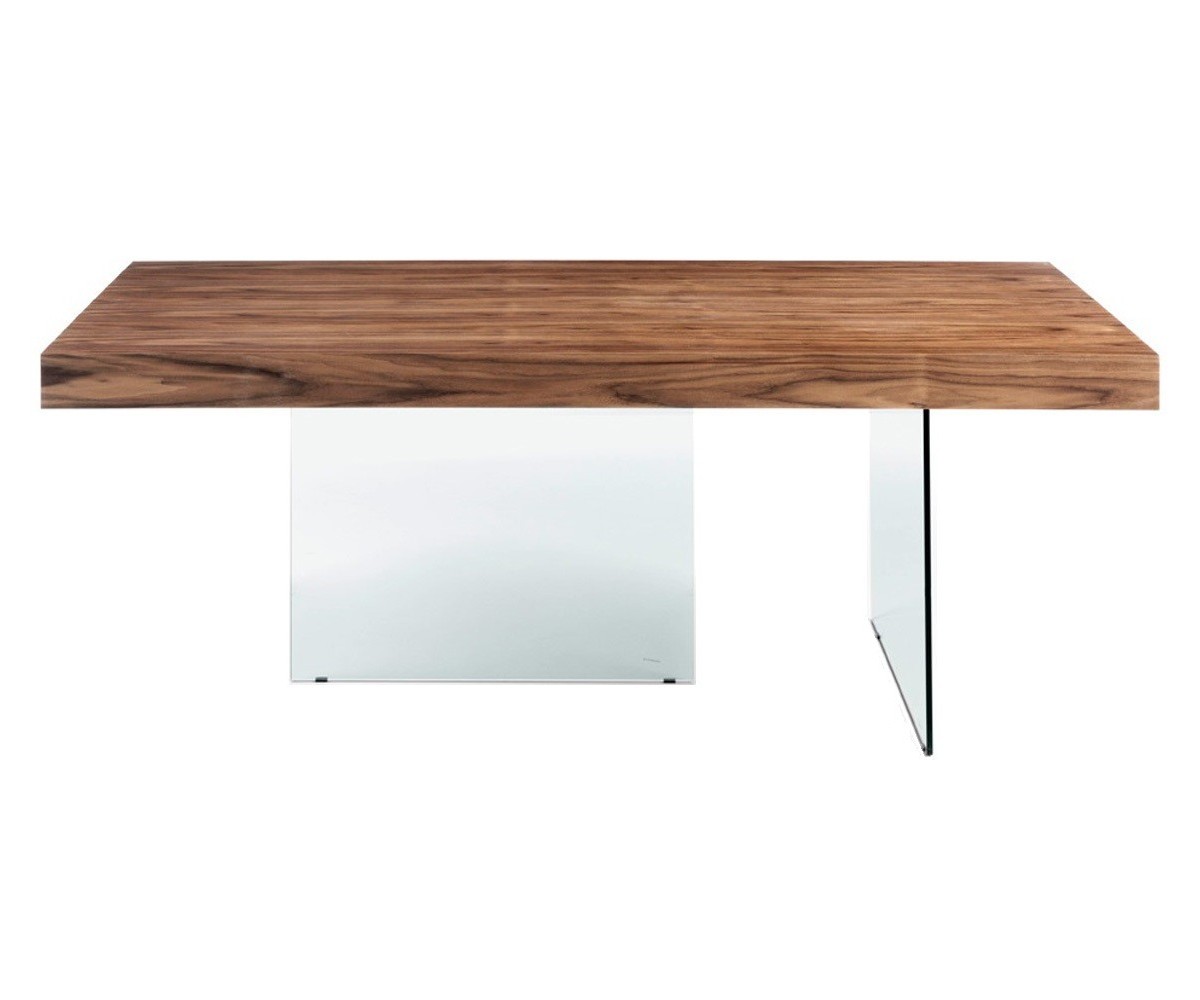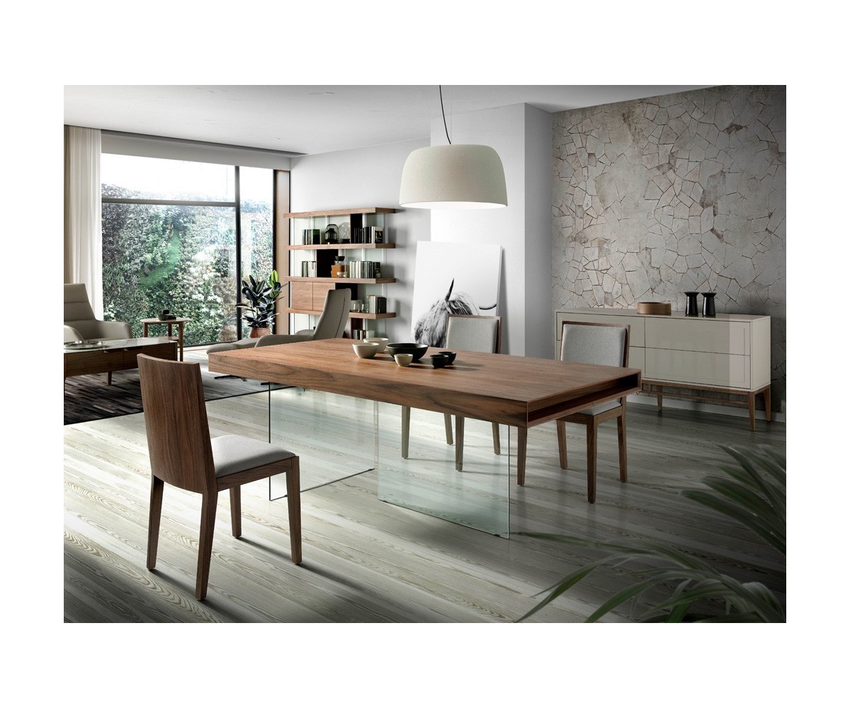 Mesa de comedor flotante, inspirada en un diseño de Daniele Lago. La mesa de comedor Air Wildwood, es un modelo icónico de la marca Lago. Con sobre de madera de nogal centenario y patas de cristal extra claro que hacen de esta pieza una mesa robusta a la vez que visualmente muy ligera. Elegante, amplia y ligera. Sentarse en esta gran mesa proporciona la experiencia única de compartir un momento suspendido en el fluir cotidiano. Es una mesa de diseño pensada para la cocina, el salón, la oficina o para locales públicos como bares y restaurantes.