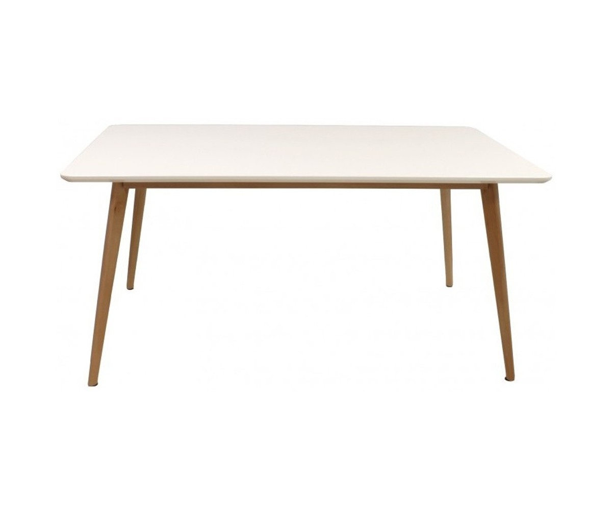 Mesa de comedor rectangular, inspirada en un diseño de Mario Cellini. Armazón y patas fabricada en haya maciza. tapa en haya maciza con triple lacado en blaco alto brillo de 25mm, de espesor. Réplica exacta con materiales originales de máxima calidad.