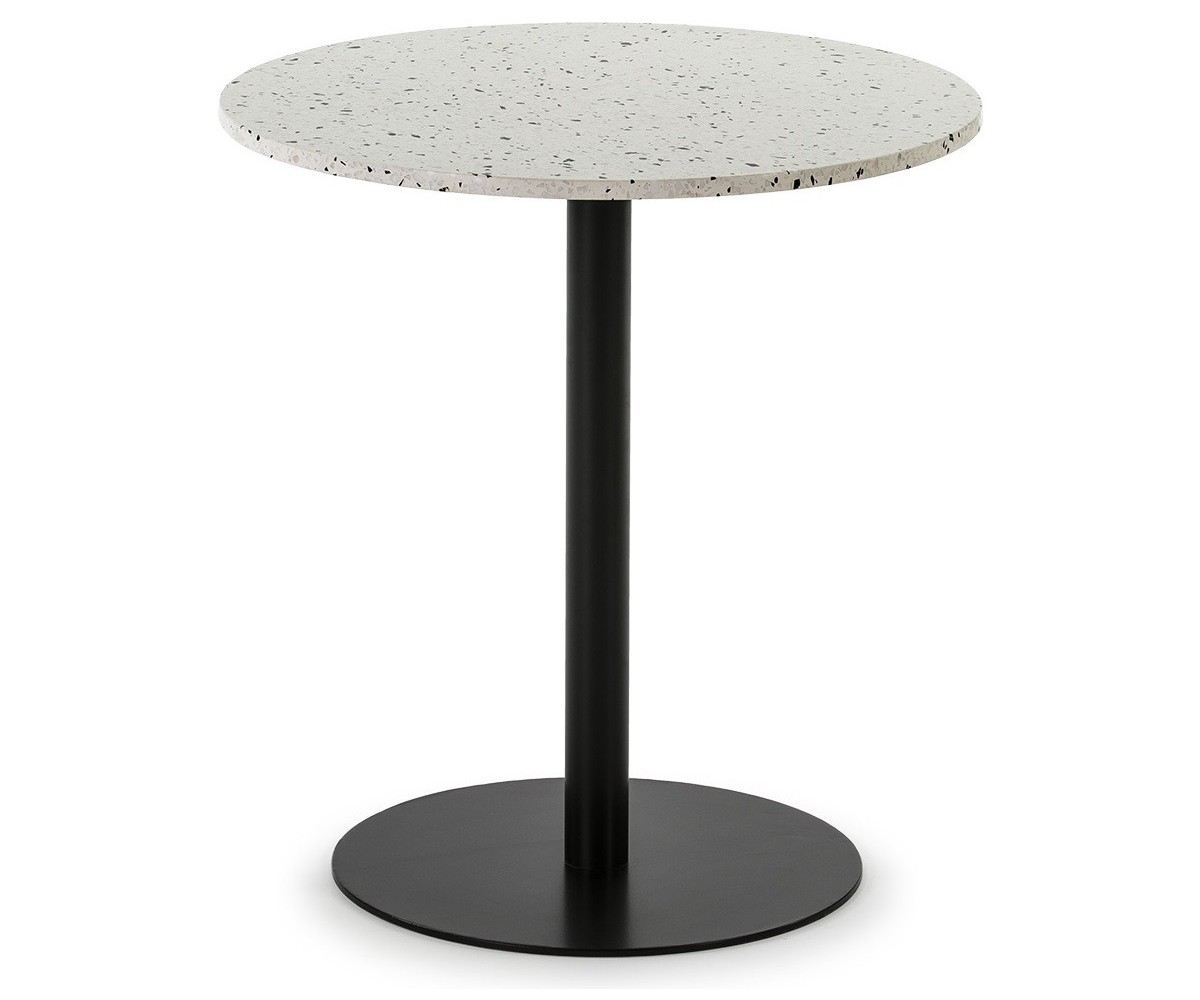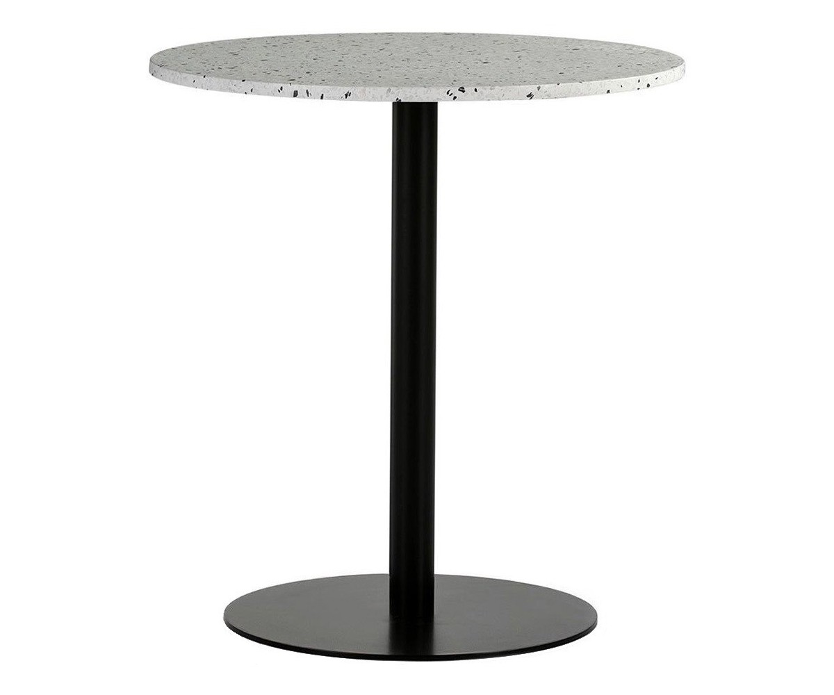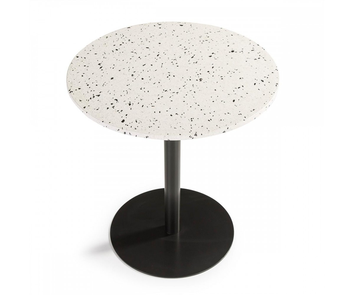 Mesa de comedor contemporanea, inspirado en un diseño de Tom Dixon. Estructura de una única pata tubular terminado en pletina fabricada en acero terminación negro. Sobre circular en mármol color blanco. Réplica exacta con materiales originales de máxima calidad.