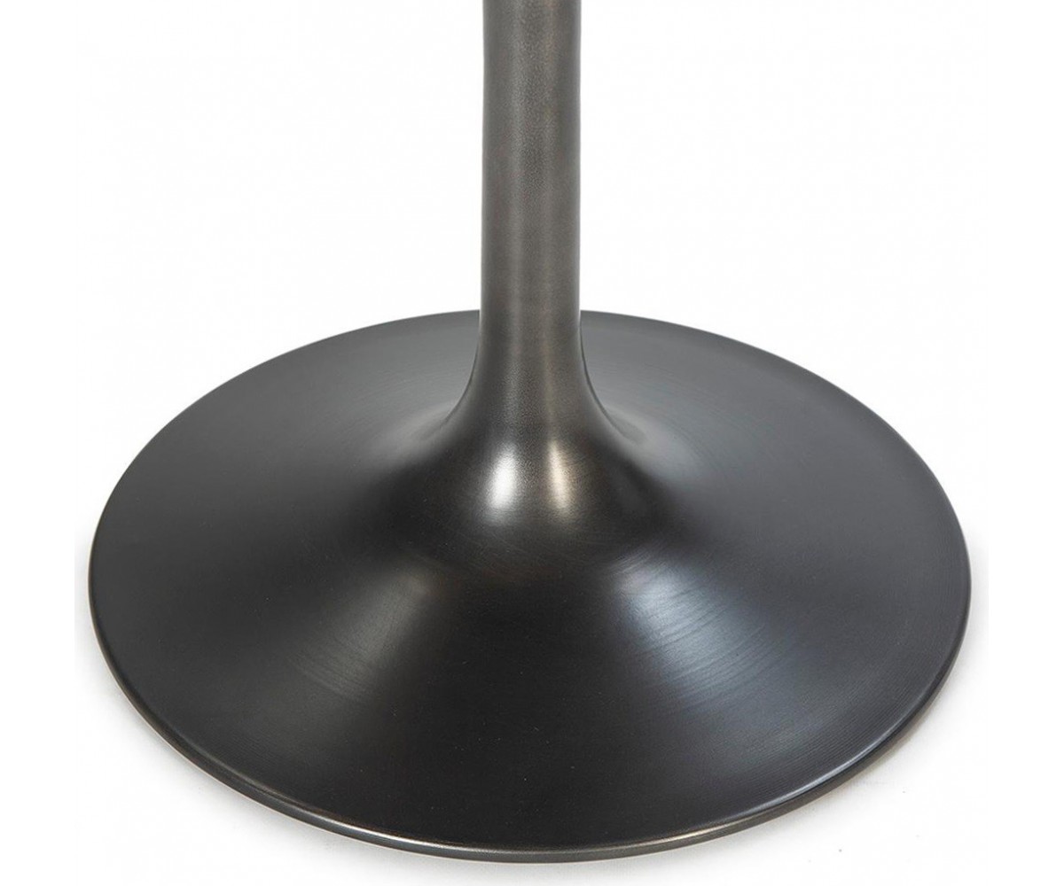 Mesa de comedor circular inspirada en un diseño de Eero Saarinen. Base de acero con triple lacado en color negro terminación satinado, tapa circular en madera maciza de olmo natural borde biselado. Disponible también en mesa de centro. Réplica exacta con materiales originales de máxima calidad.