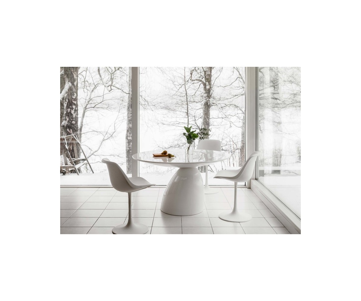 La mesa de comedor ovalada Parabel esta inspirada en un diseño del finlandés Eero Aarnio para la marca Eero Aarnio Originals. Parabel es una palabra alemana para un tipo particular de curva que tiene forma de arco. Esta mesa tiene que ver con elegantes curvas y arcos.