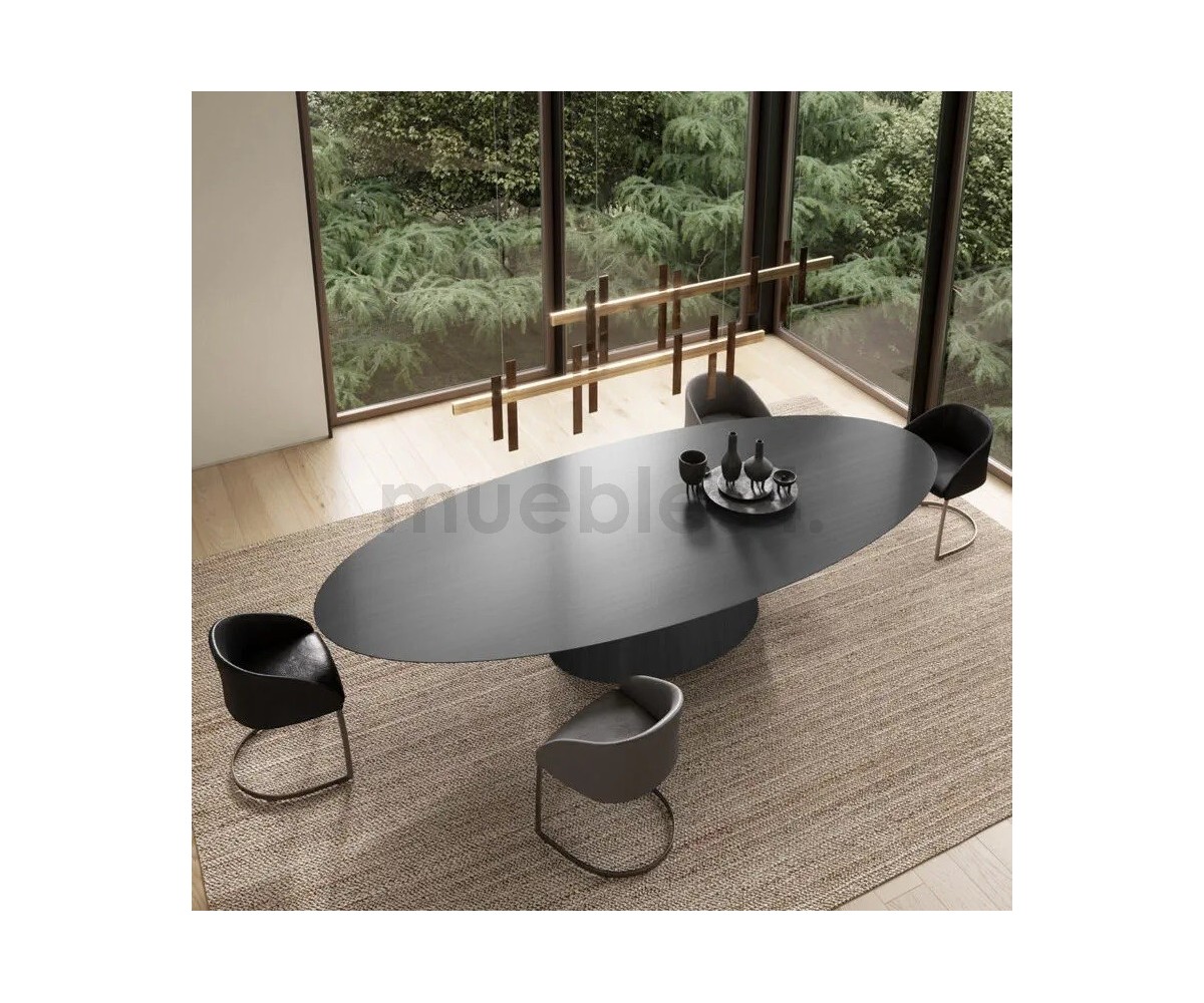 Mesa ovalada inspirada en un diseño de Ferruccio Laviani para Emmemobili. Mesa de comedor fija Emmemobili Ufo con Lazy Susan incrustada de Ferruccio Laviani, años 2000.