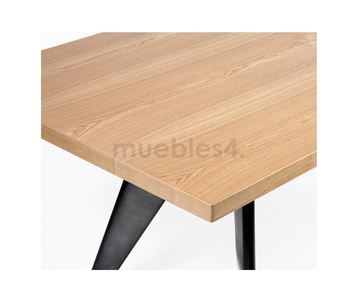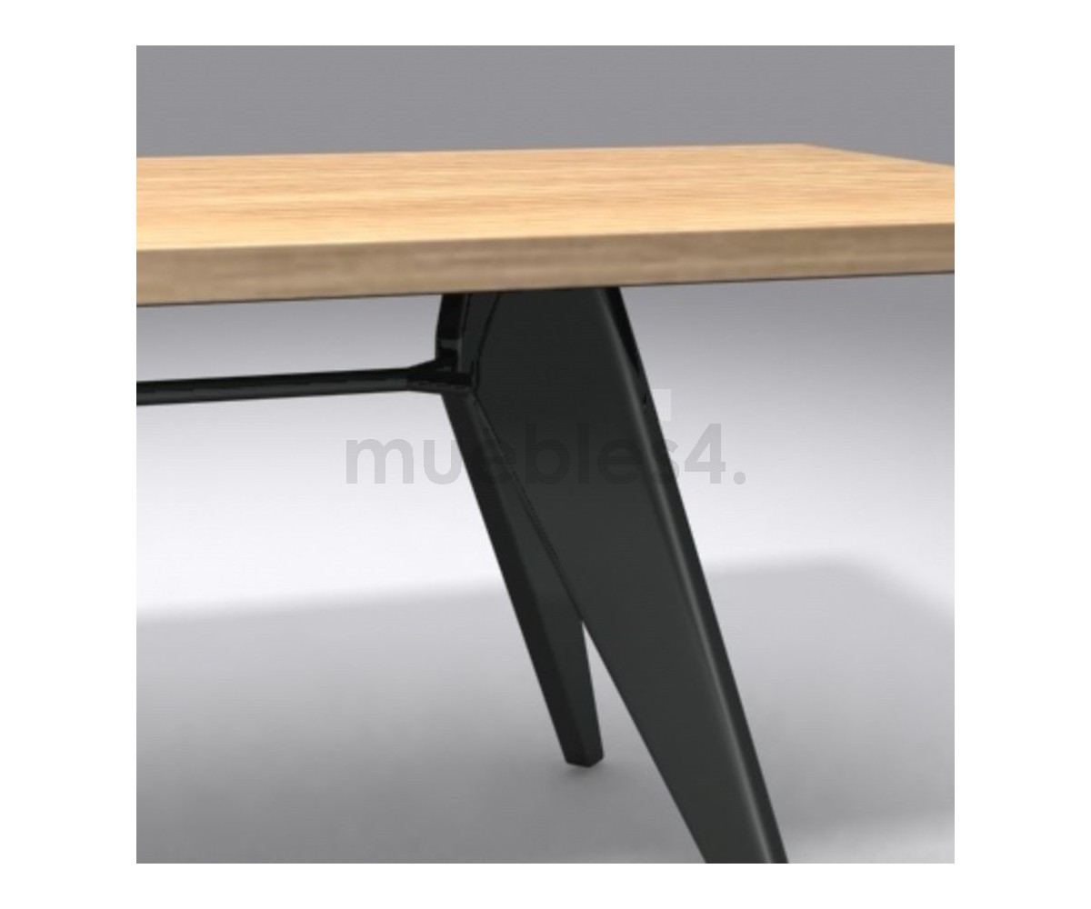 Mesa de comedor rectangular inspirada en un diseño de Jean Prouvé. Fabricada en madera de roble macizo, estructura de acero con triple lacado al horno en color negro para unir las 4 patas que le aporta gran estabilidad y resistencia. Réplica exacta con materiales originales de máxima calidad.