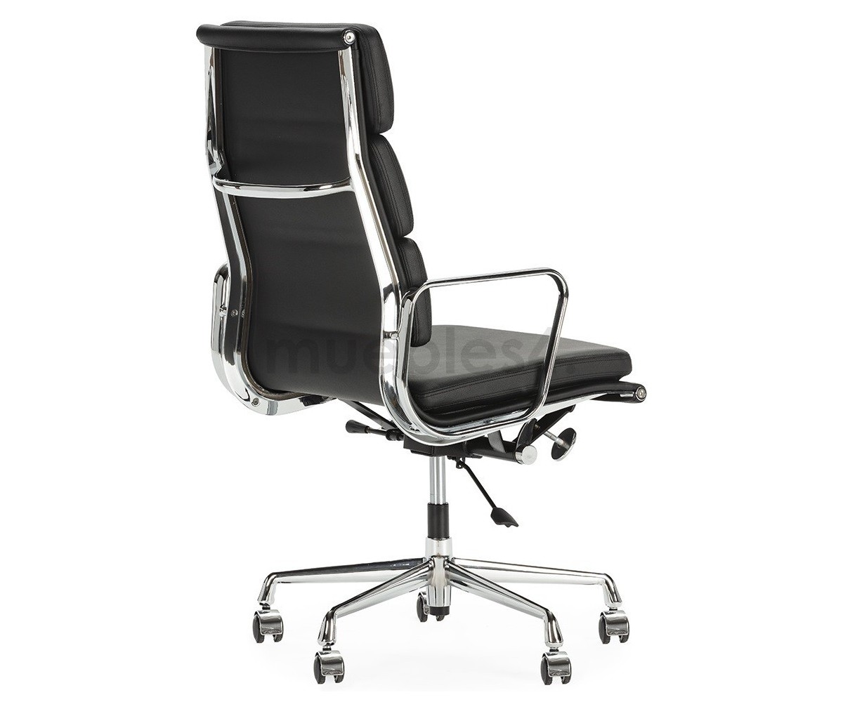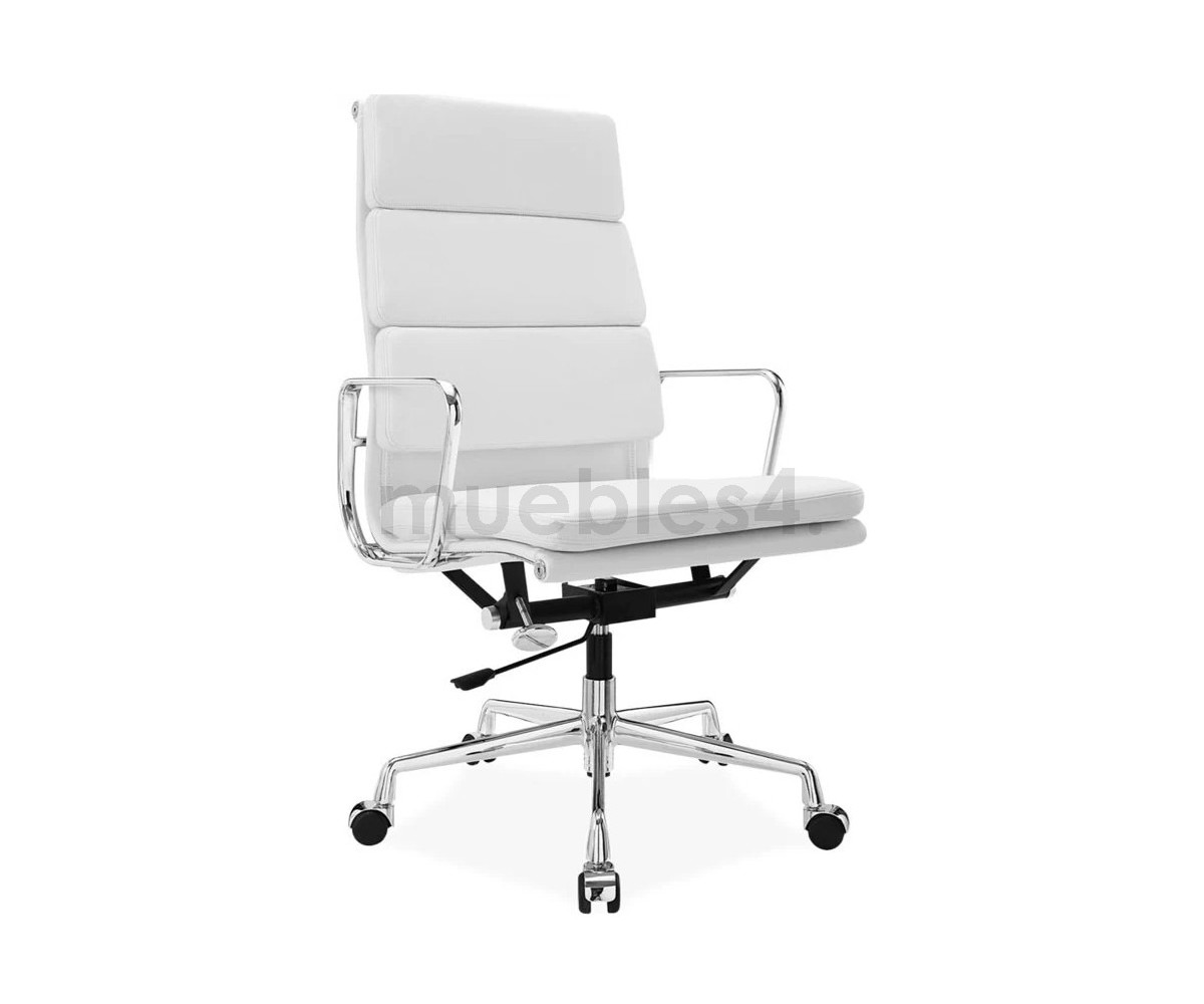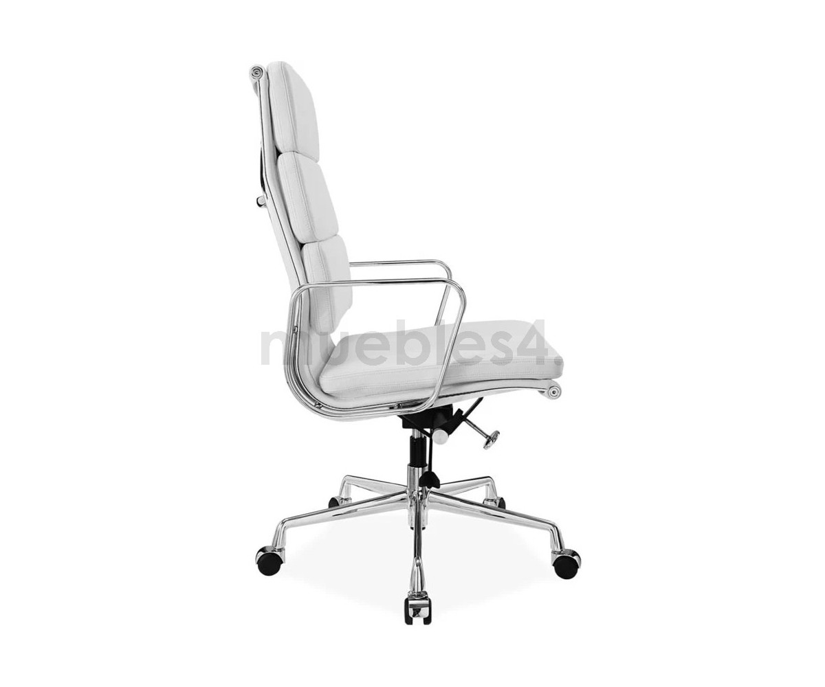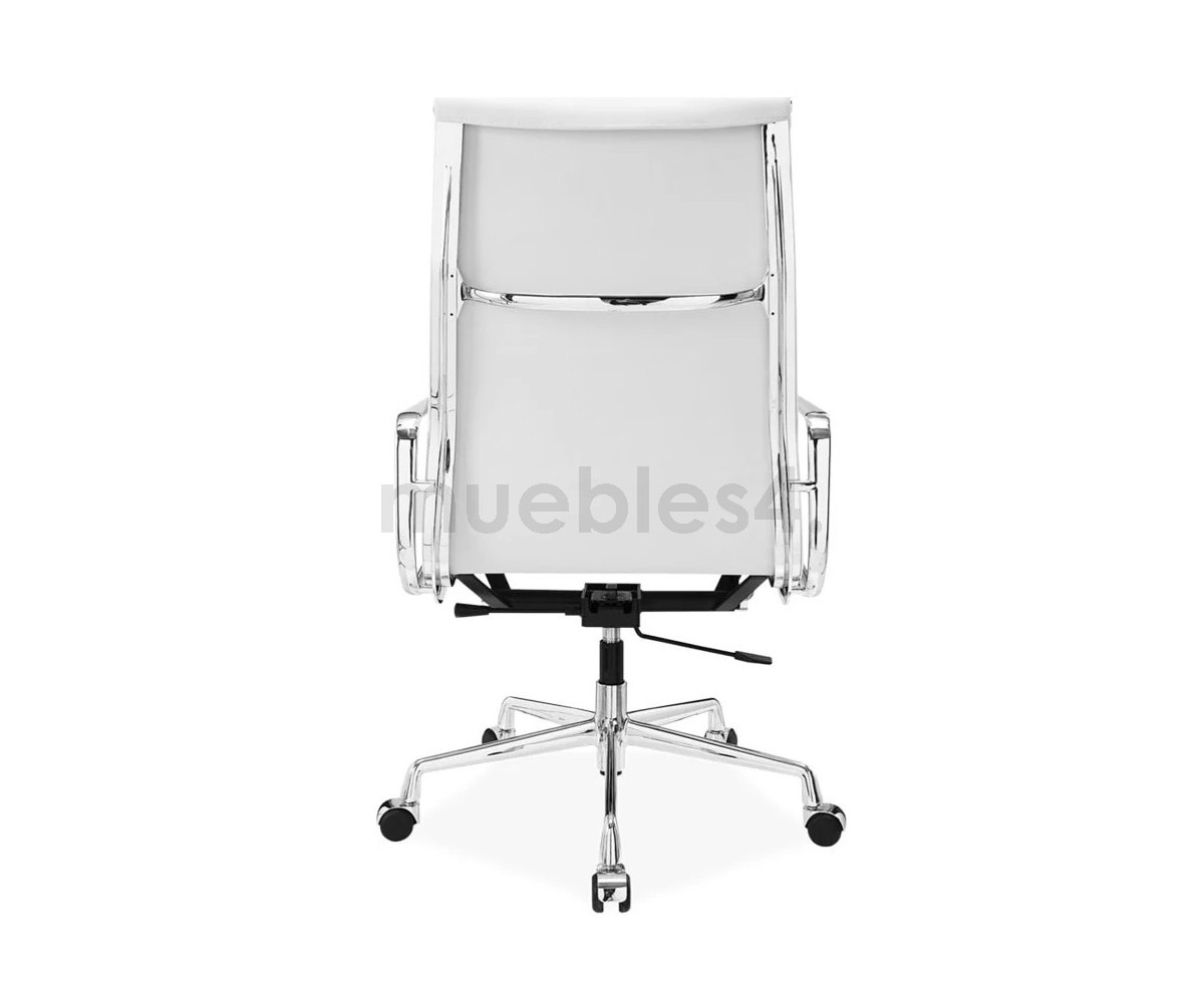 Silla de oficina inspirada en un diseño de Charles & Ray Eames. Por su forma y construcción se asemeja a la Aluminium Chair. Extraordinario confort, al combinar el mecanismo de inclinación, que puede ajustarse al peso del usuario, y al suave acolchado. Su diseño elegante, simple y cómodo hace que sea un producto perfecto para oficinas, despachos, estudios.