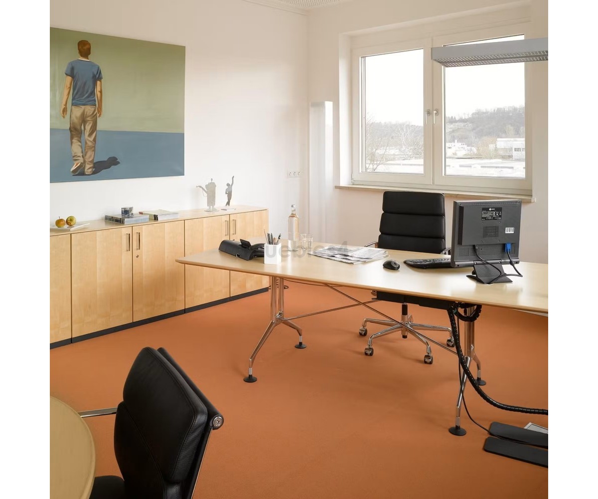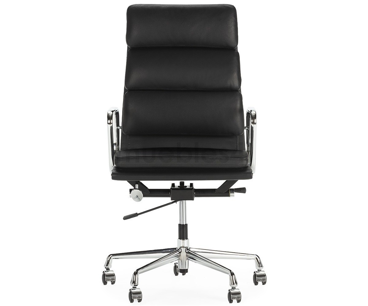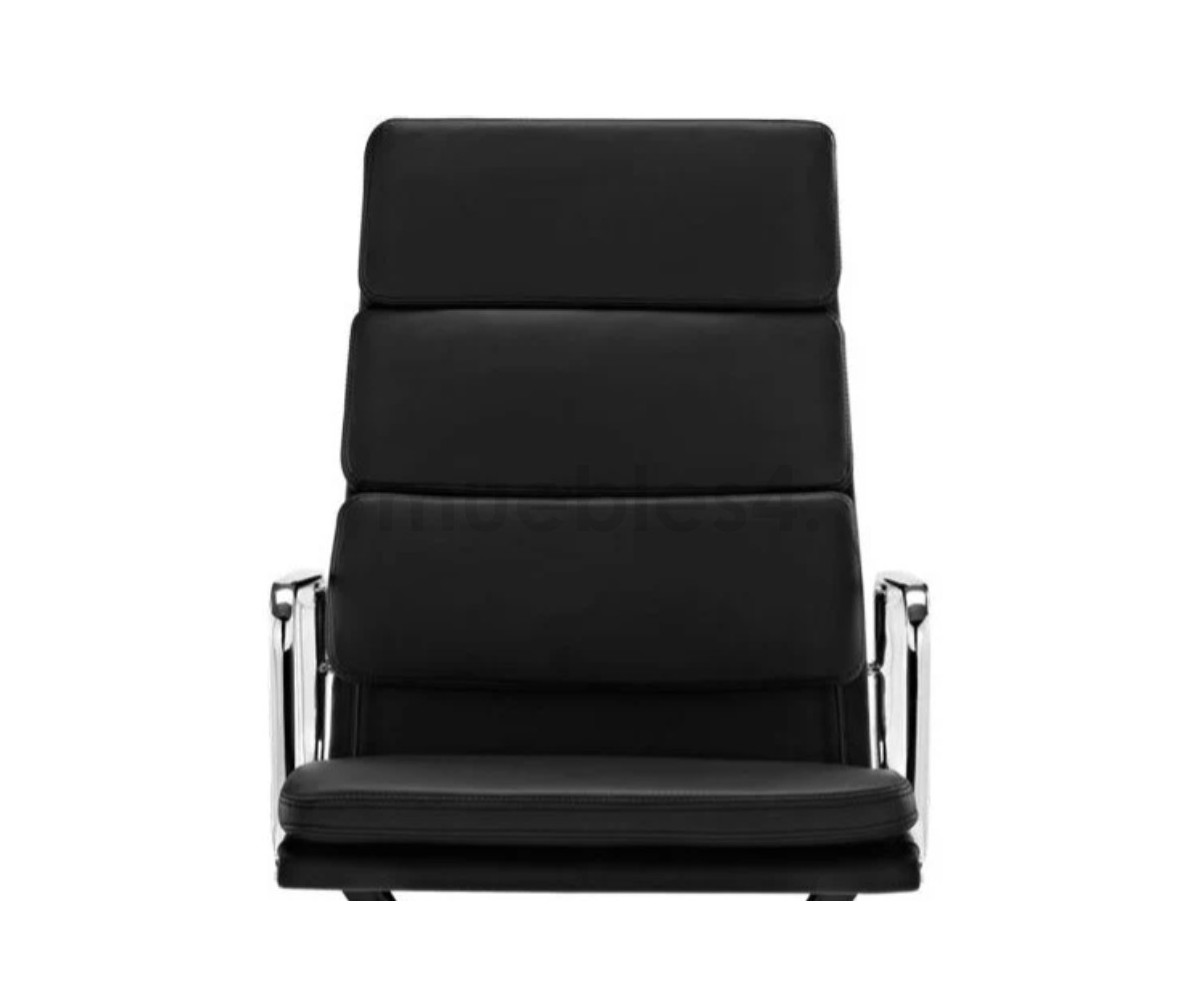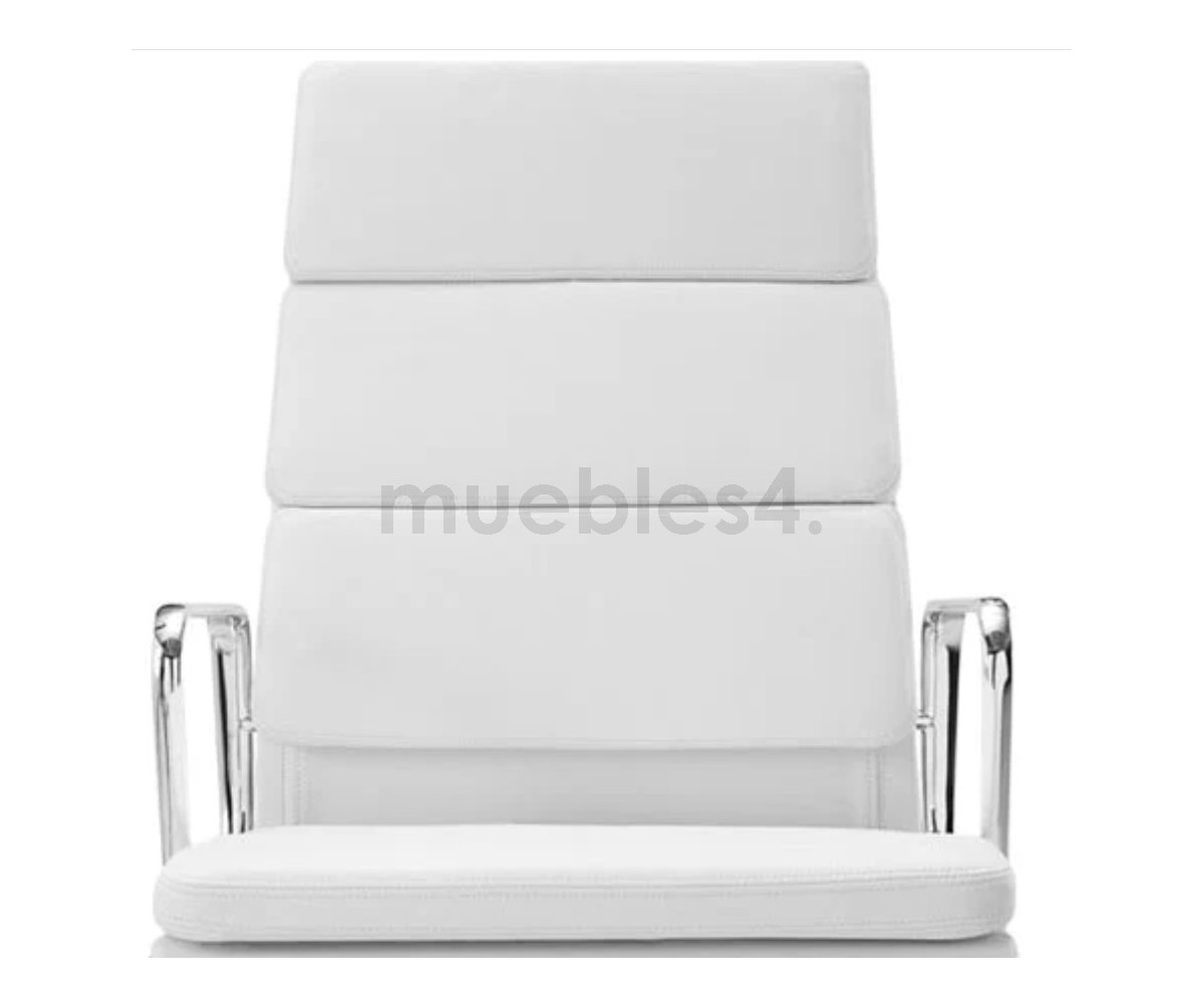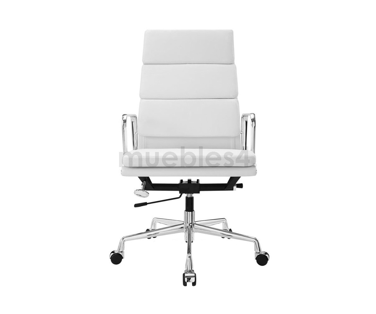 Silla de oficina inspirada en un diseño de Charles & Ray Eames. Por su forma y construcción se asemeja a la Aluminium Chair. Extraordinario confort, al combinar el mecanismo de inclinación, que puede ajustarse al peso del usuario, y al suave acolchado. Su diseño elegante, simple y cómodo hace que sea un producto perfecto para oficinas, despachos, estudios.
