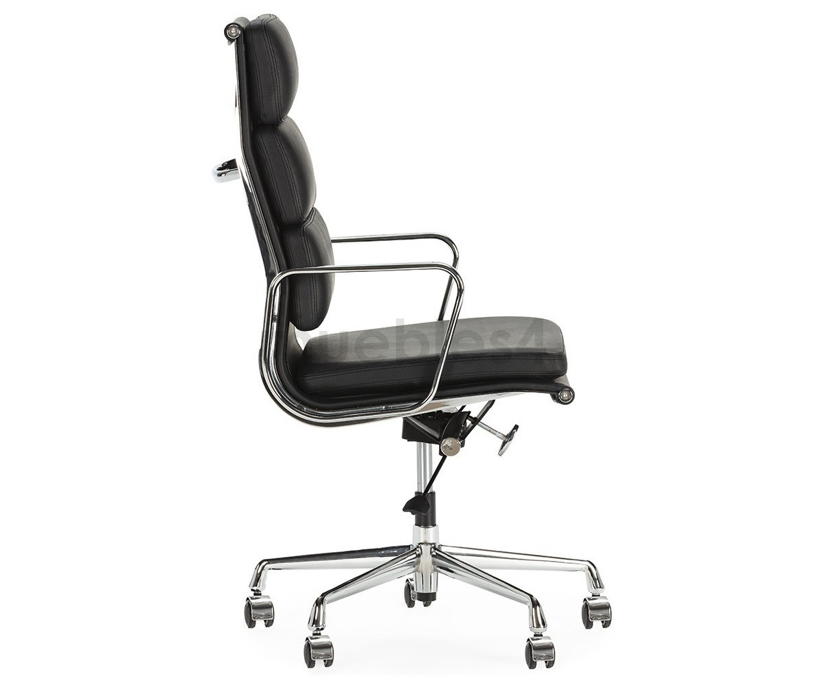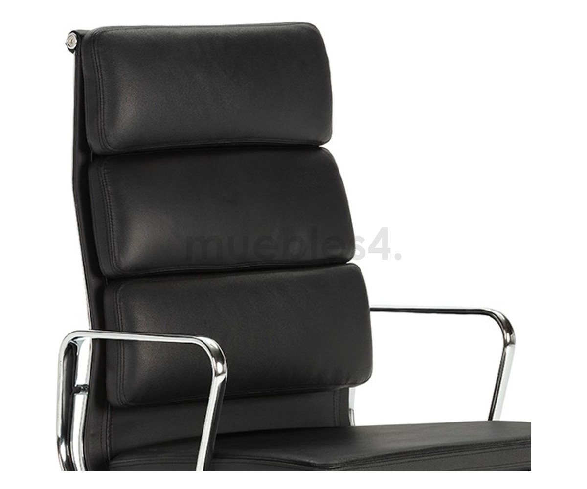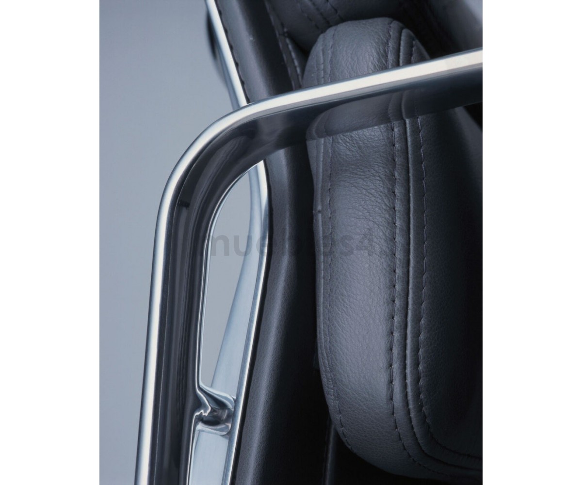 Silla de oficina inspirada en un diseño de Charles & Ray Eames. Por su forma y construcción se asemeja a la Aluminium Chair. Extraordinario confort, al combinar el mecanismo de inclinación, que puede ajustarse al peso del usuario, y al suave acolchado. Su diseño elegante, simple y cómodo hace que sea un producto perfecto para oficinas, despachos, estudios.