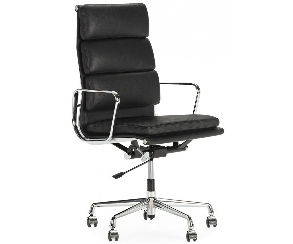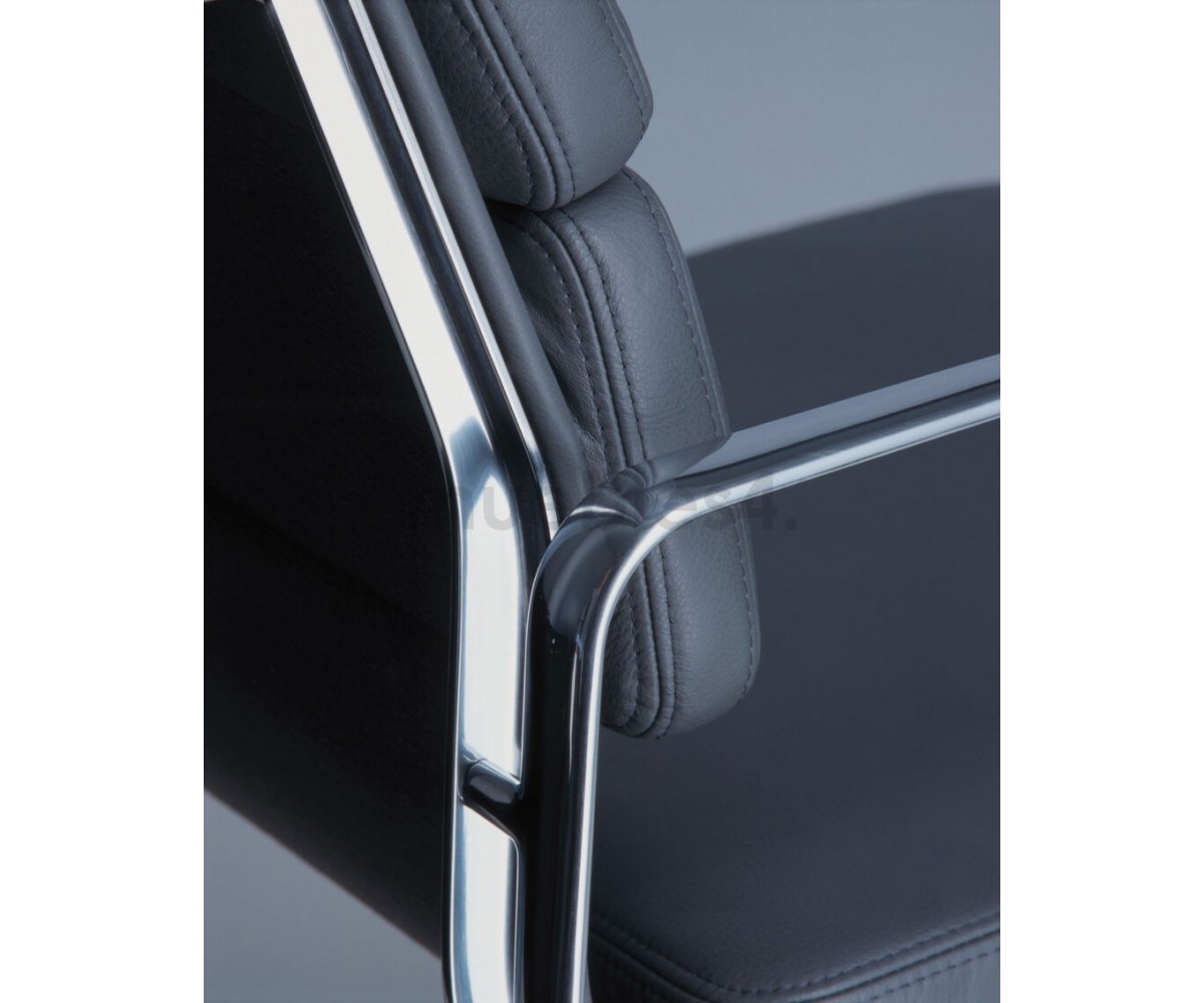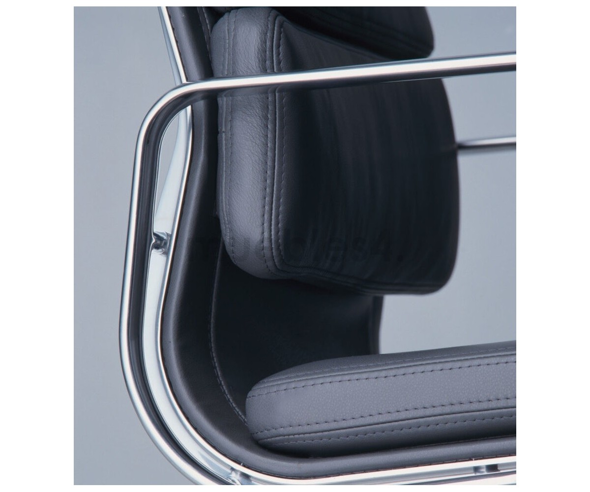 Silla de oficina inspirada en un diseño de Charles & Ray Eames. Por su forma y construcción se asemeja a la Aluminium Chair. Extraordinario confort, al combinar el mecanismo de inclinación, que puede ajustarse al peso del usuario, y al suave acolchado. Su diseño elegante, simple y cómodo hace que sea un producto perfecto para oficinas, despachos, estudios.