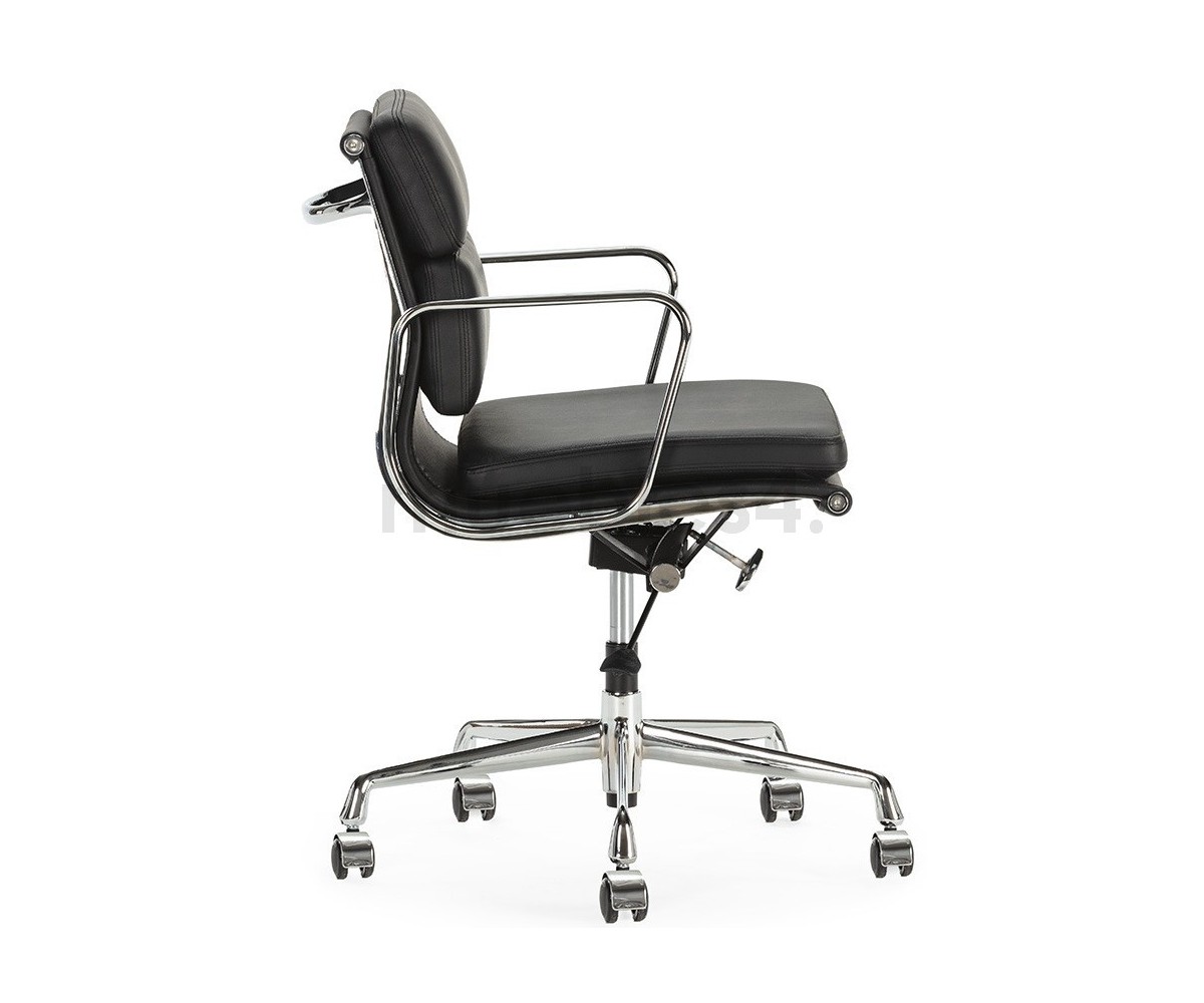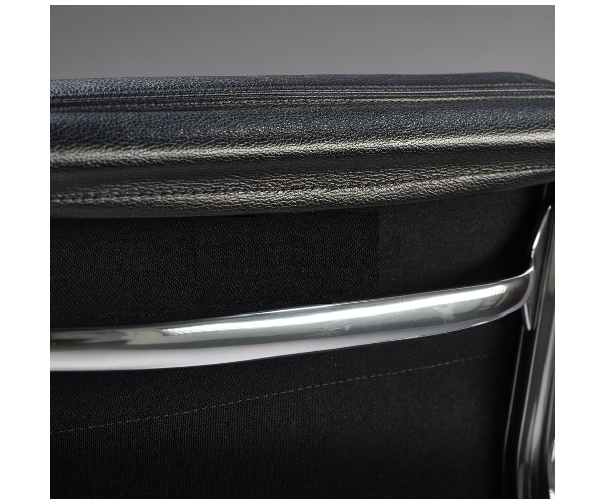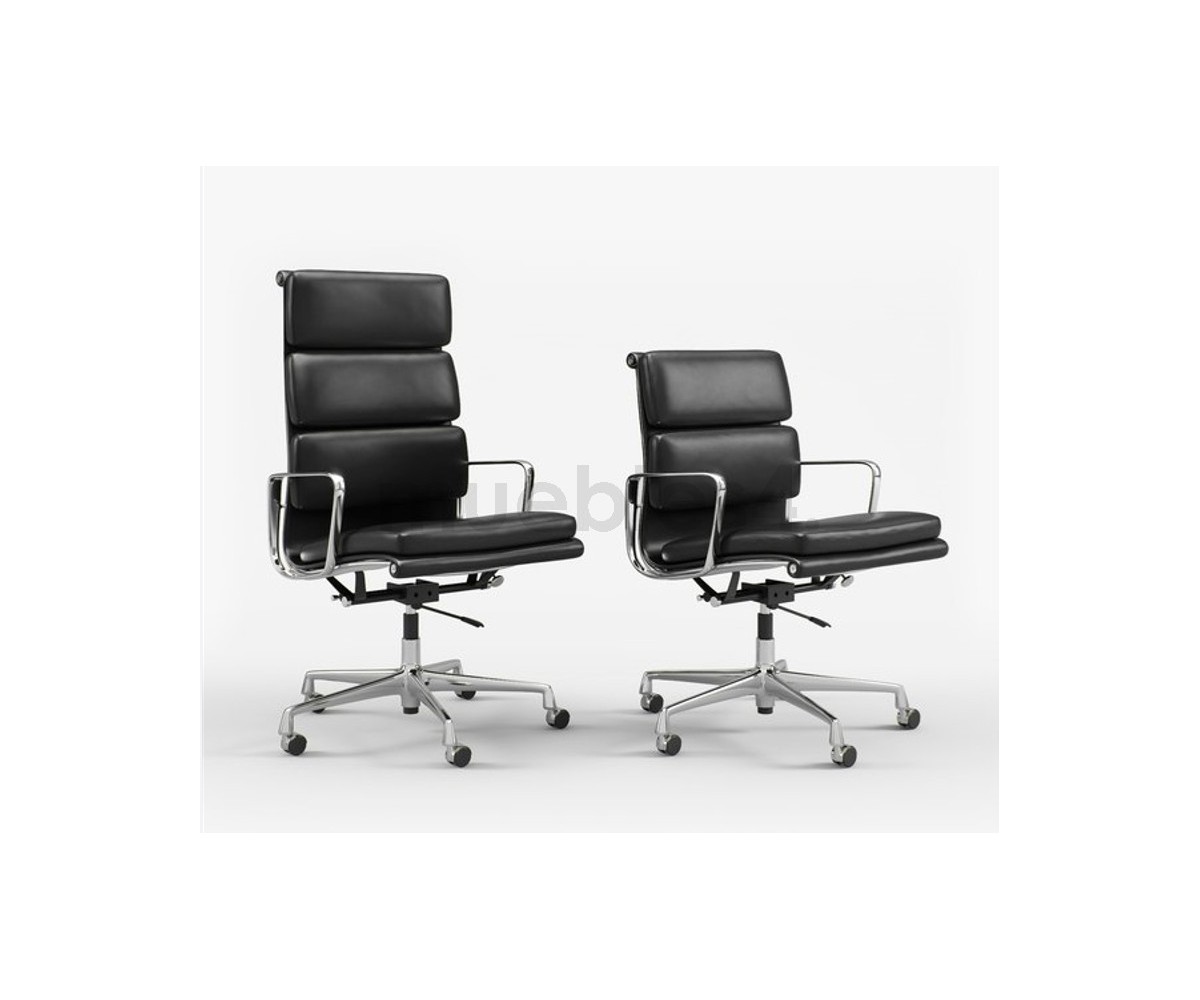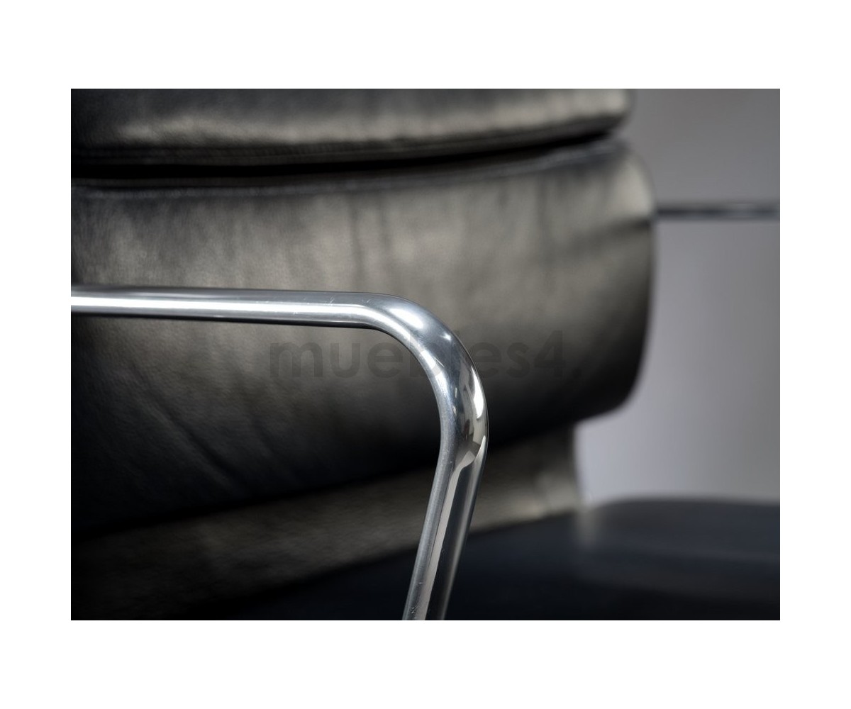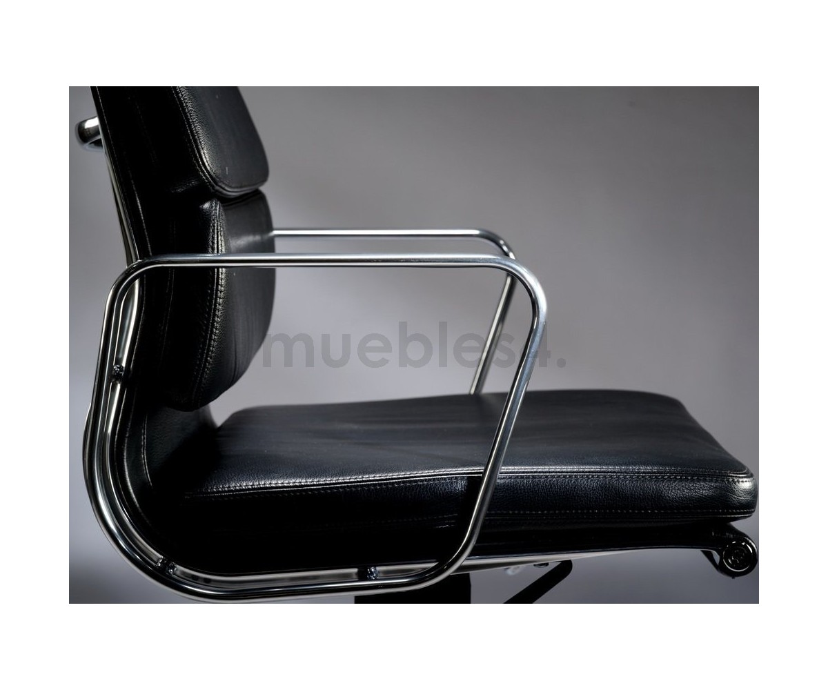 Silla de oficina inspirada en un diseño de Charles & Ray Eames. Por su forma y construcción se asemeja a la Aluminium Chair. Extraordinario confort, al combinar el mecanismo de inclinación, que puede ajustarse al peso del usuario, y al suave acolchado. Su diseño elegante, simple y cómodo hace que sea un producto perfecto para oficinas, despachos, estudios.