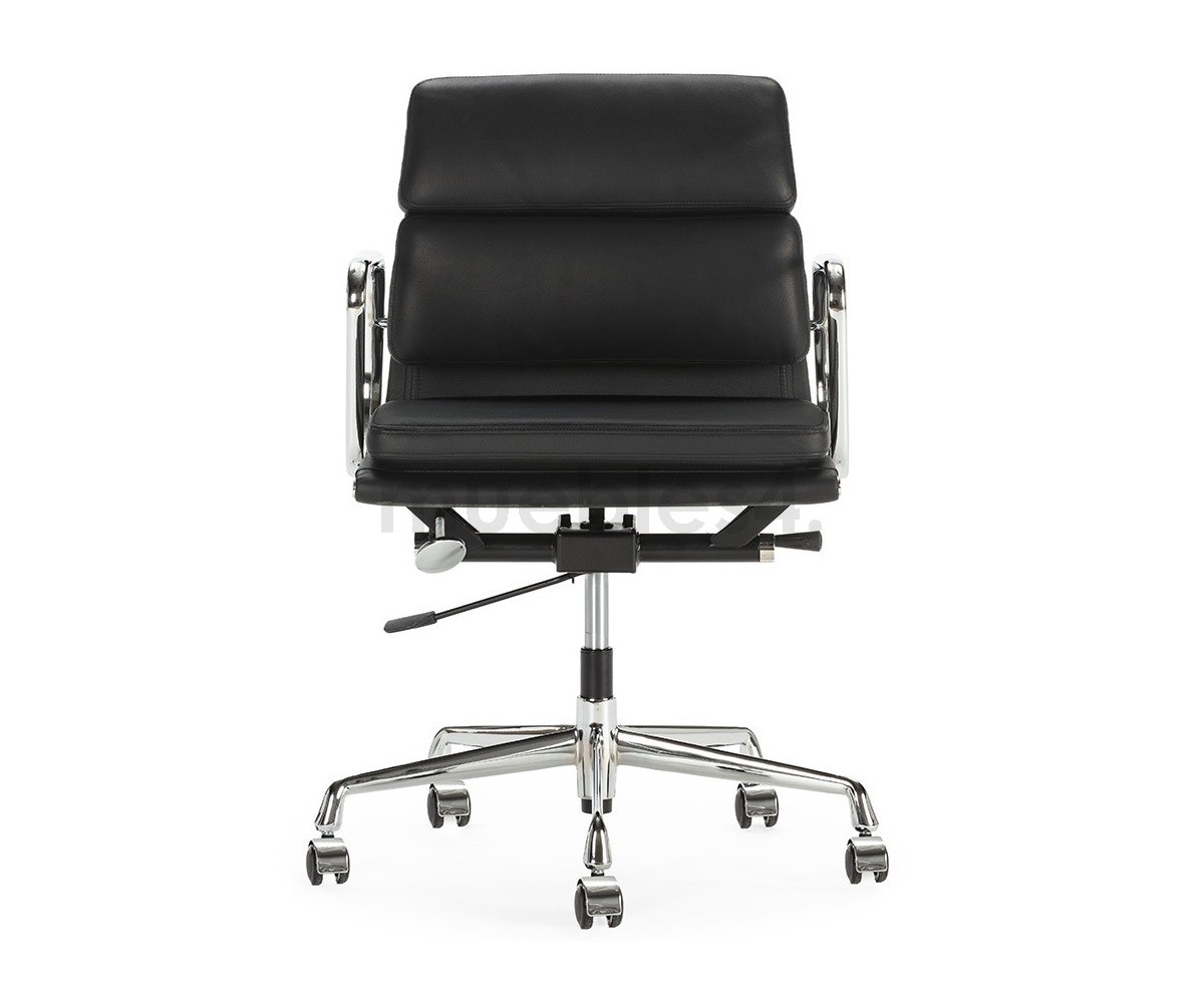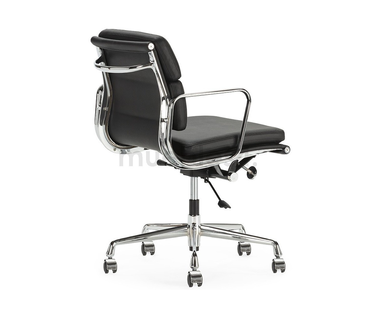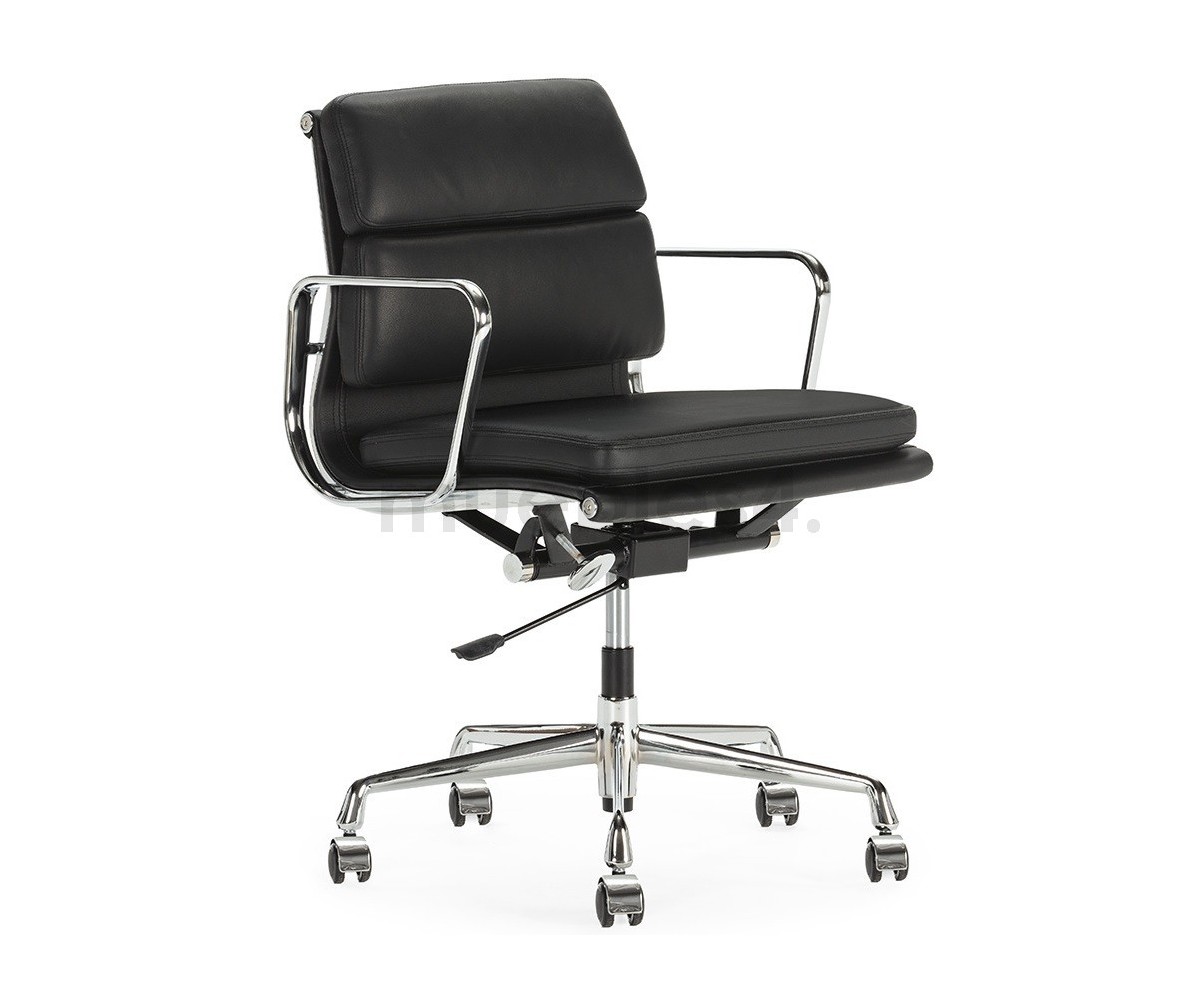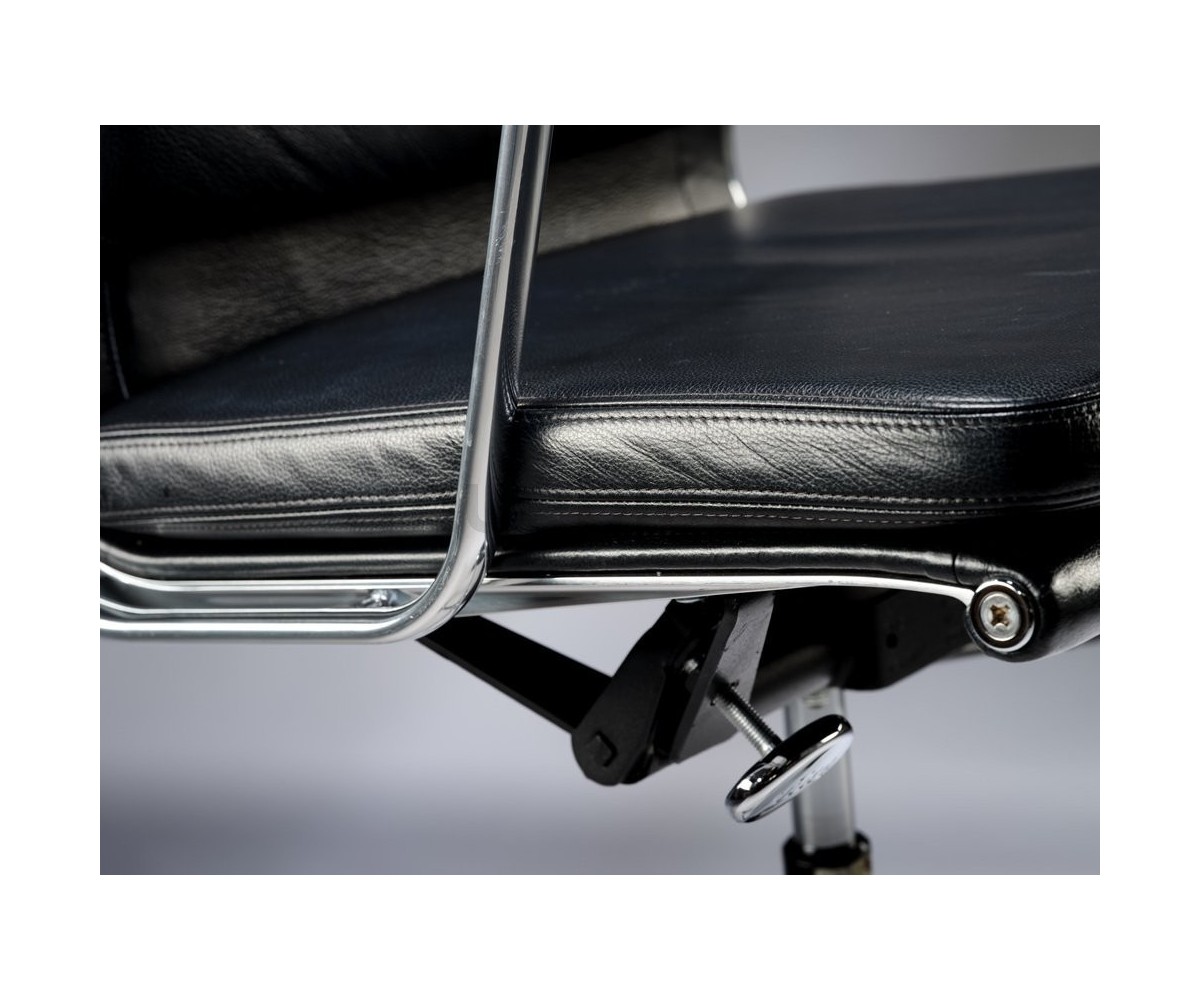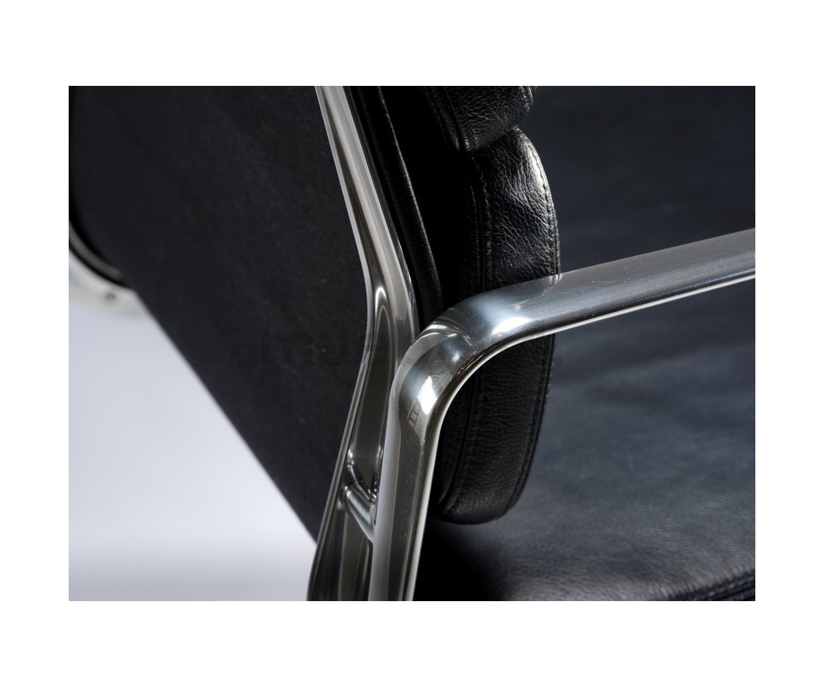 Silla de oficina inspirada en un diseño de Charles & Ray Eames. Por su forma y construcción se asemeja a la Aluminium Chair. Extraordinario confort, al combinar el mecanismo de inclinación, que puede ajustarse al peso del usuario, y al suave acolchado. Su diseño elegante, simple y cómodo hace que sea un producto perfecto para oficinas, despachos, estudios.