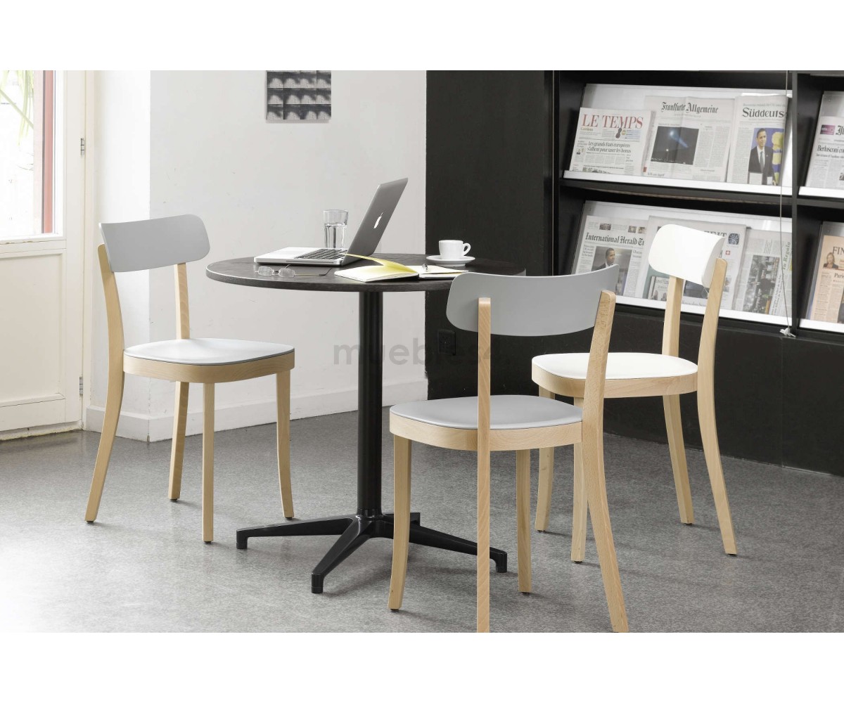 Silla inspirada en un diseño de Jasper Morrison. Estructura fabricada en madera de fresno macizo natural, asiento y respaldo en polipropileno color amarillo o blanco. Réplica exacta con materiales originales de máxima calidad.