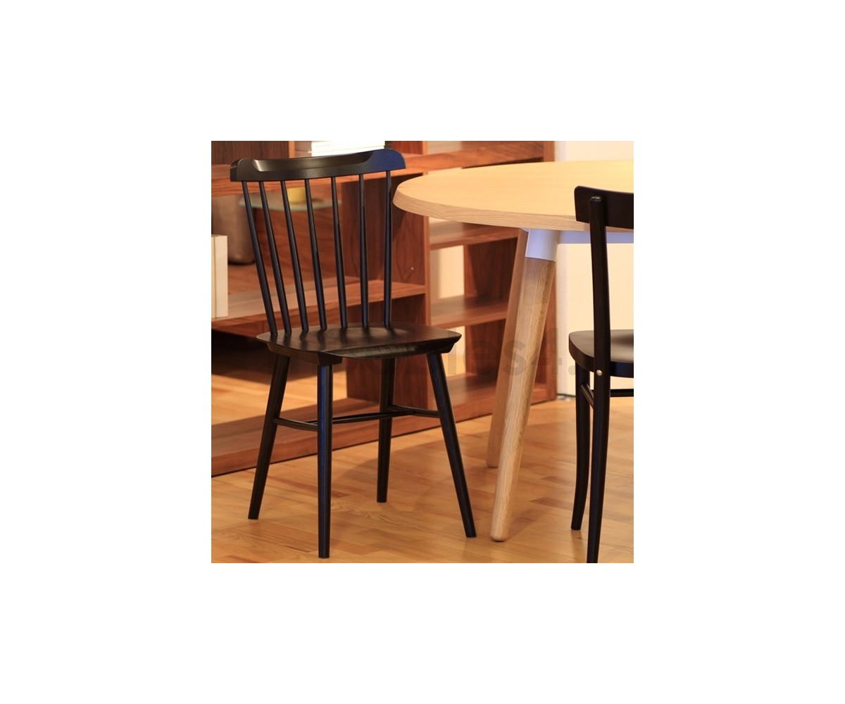 Silla inspirada en un diseño de Michael Thonet. Fabricada en madera de roble macizo, asiento chapado en roble, terminacion color blanco, negro o natural. Réplica exacta con materiales originales de máxima calidad.