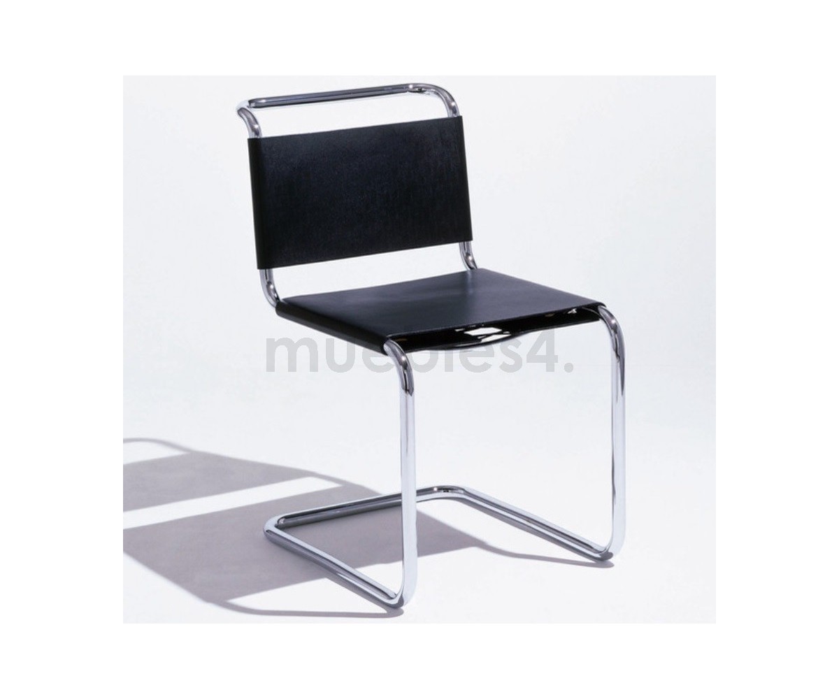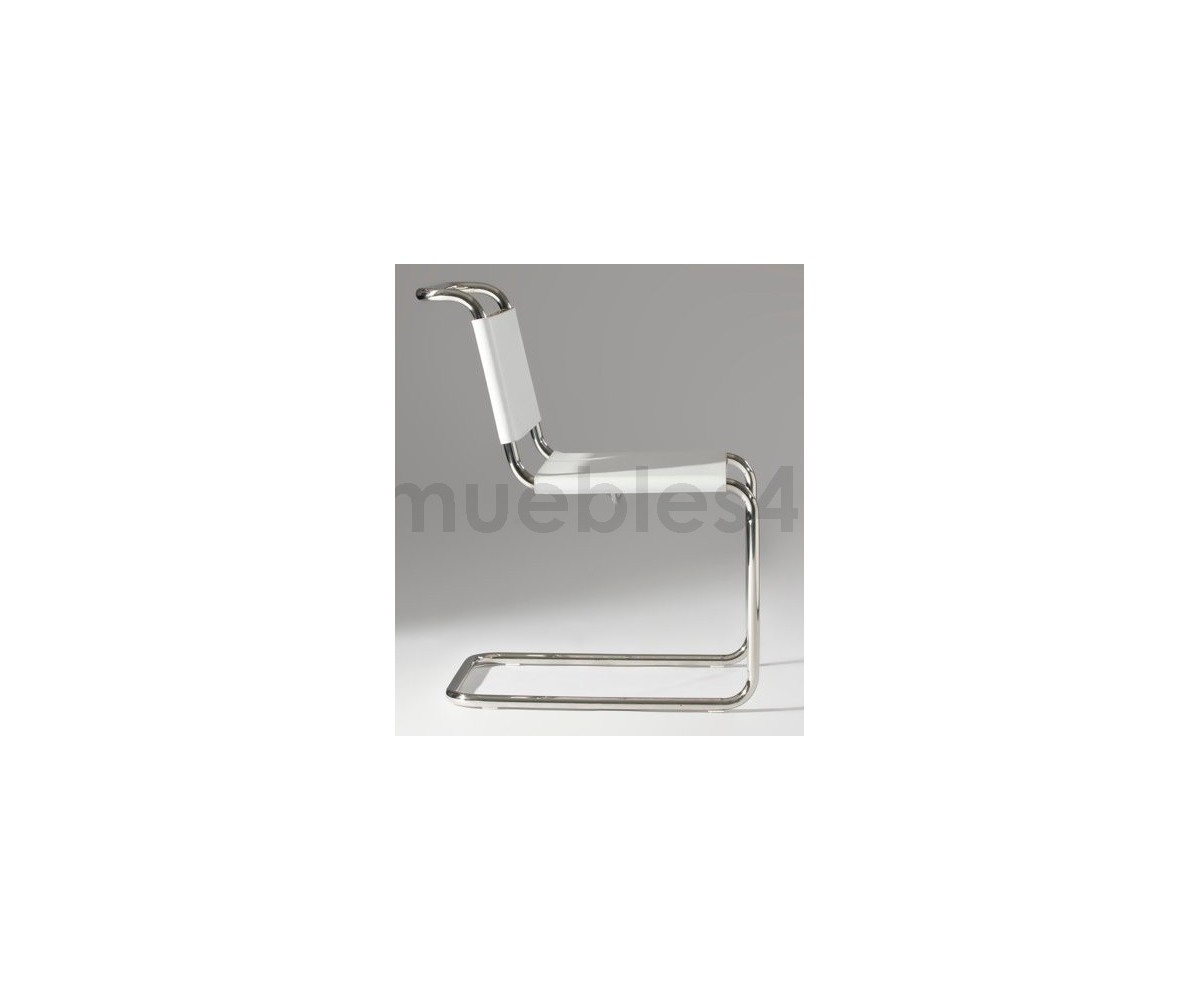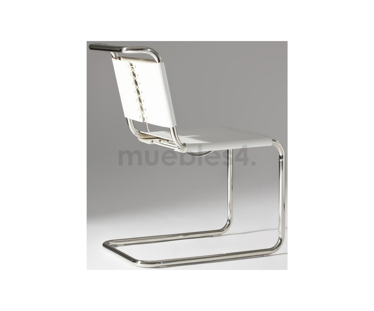 Silla inspirada en un diseño de Marcel Breuer. Fabricada en acero cromado tubular terminación brillo, asiento y respaldo confeccionado en cuero de alta calidad, color blanco. Réplica exacta con materiales originales de máxima calidad.