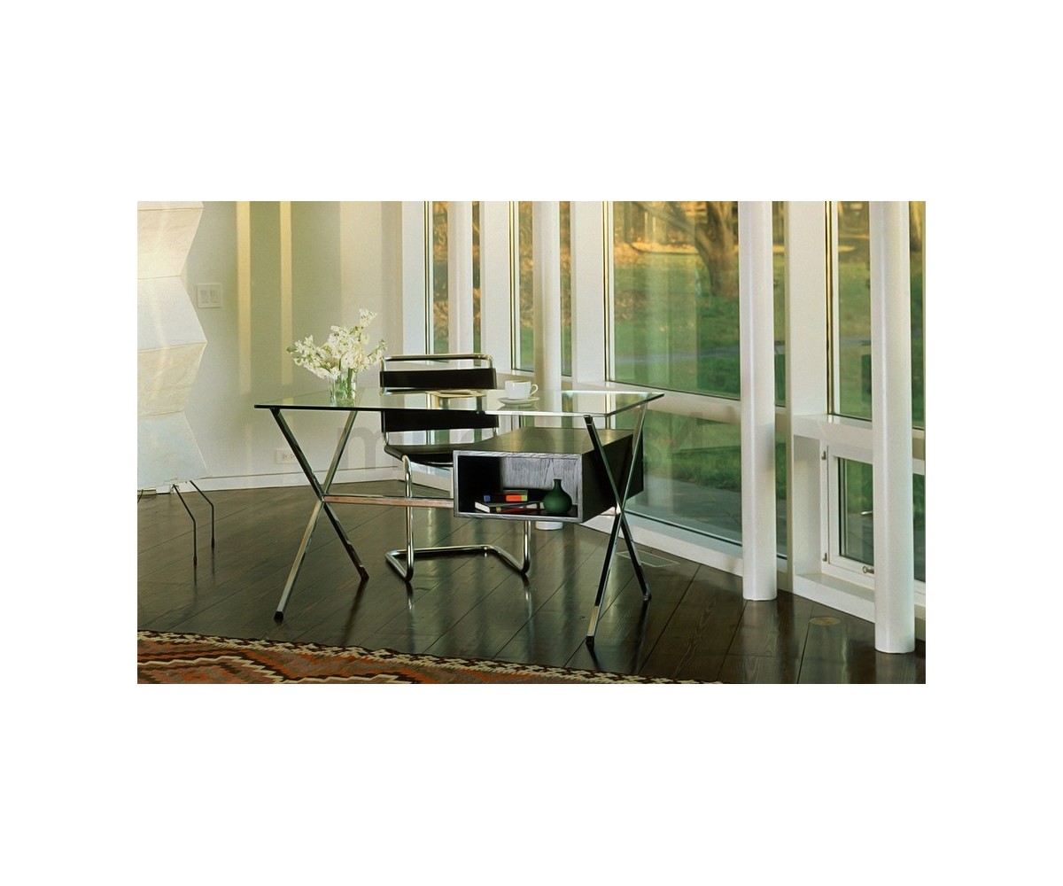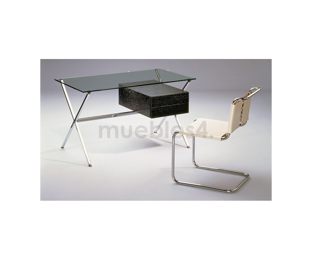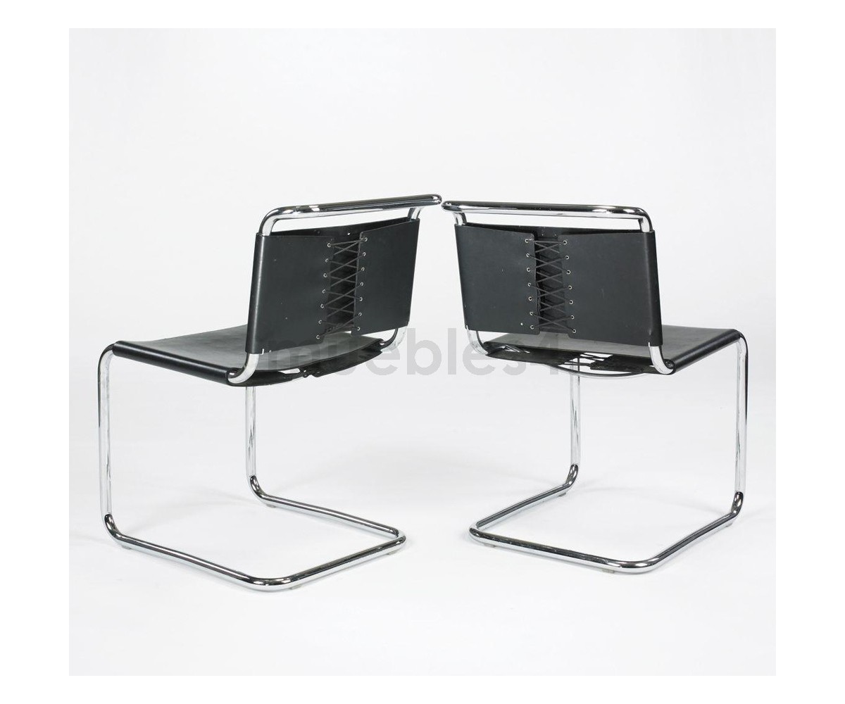 Silla inspirada en un diseño de Marcel Breuer. Fabricada en acero cromado tubular terminación brillo, asiento y respaldo confeccionado en cuero de alta calidad, color blanco. Réplica exacta con materiales originales de máxima calidad.