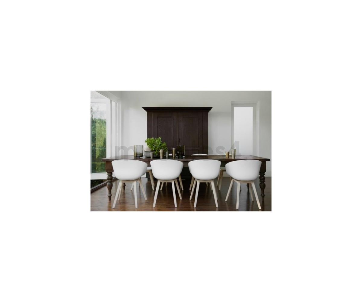 Silla inspirada en un diseño de Hee Welling and HAY. Fabricada con una sólida carcasa con un respaldo curvo con reposabrazos. Proporciona un excelente confort y una silueta suave y unificada, totalmente atemporal. Pertenece a la exitosa colección de asientos About A Chair, en los que encontramos diferentes acabados, bases y carcasas de asiento que dan lugar a una amplia variedad de sillas.