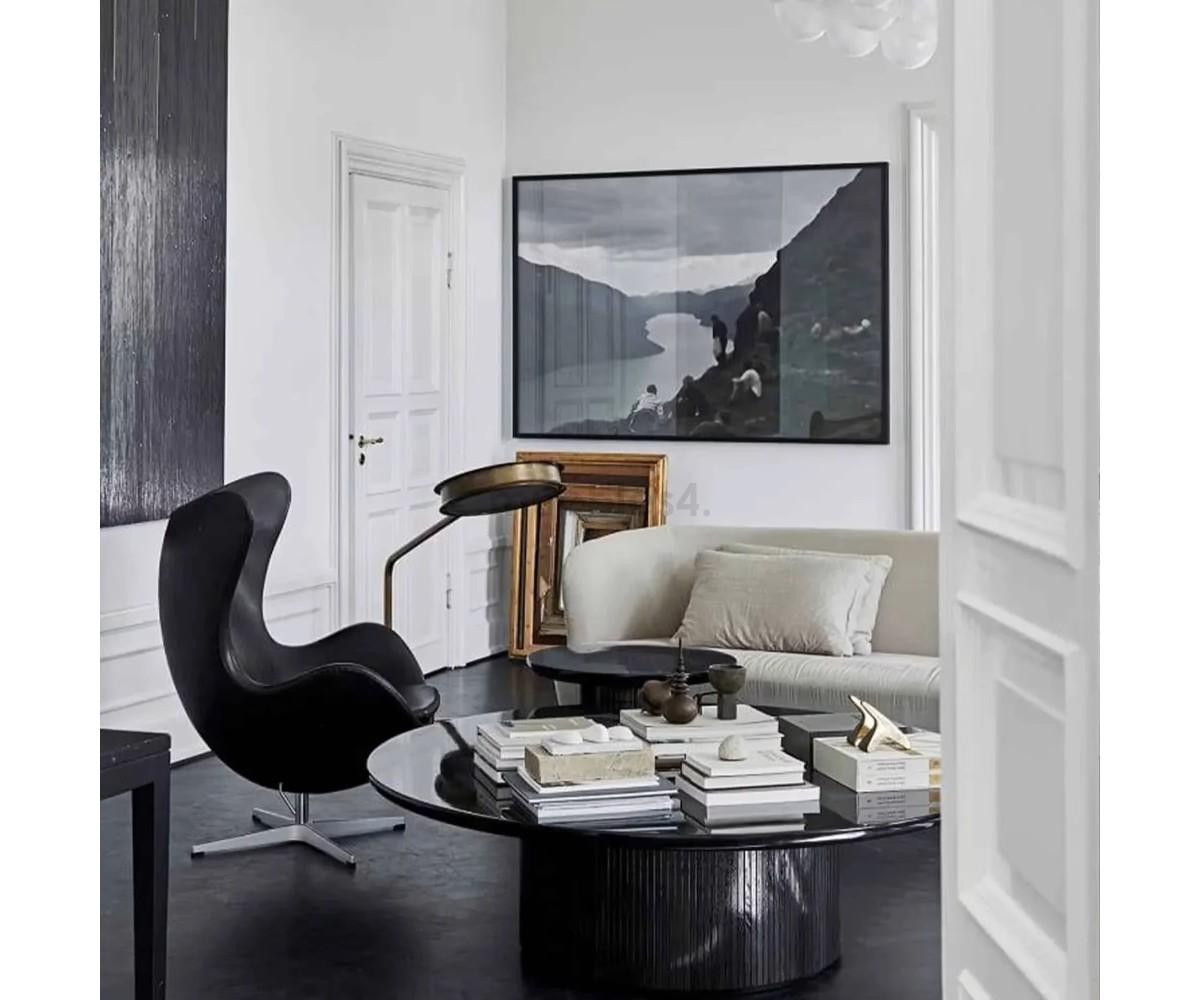 Butaca inspirada en un diseño de Arne Jacobsen editada por Fritz Hansen. Sigue siendo una pieza icónica de la historia del diseño desde que Arne Jacobsen la concibiera en 1958. Fue diseñada para el lobby y la recepción del Hotel Real en Copenhague. Esta reedición de Fritz Hansen se mantiene fiel a la visión del diseñador y se ejecuta utilizando únicamente materiales de la más alta calidad.