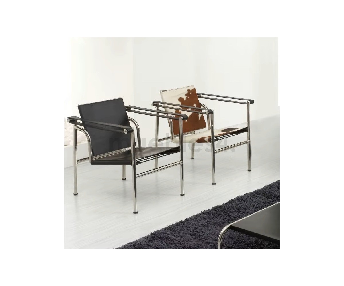 Sillón inspirado en un diseño de Le Corbusier, Pierre Jeanneret, Charlotte Perriand. El sillón 1 Fauteuil Dossier Basculant de hace más de ochenta años es una de las joyas del diseño modernista de los últimos tiempos. Desarrollada por primera vez en su versión original para el proyecto Villa Church en 1928. Revolucionario, criticado pero vanguardista, Le Corbusier trajo así a la historia del diseño una silla o más bien un sillón ejemplar.