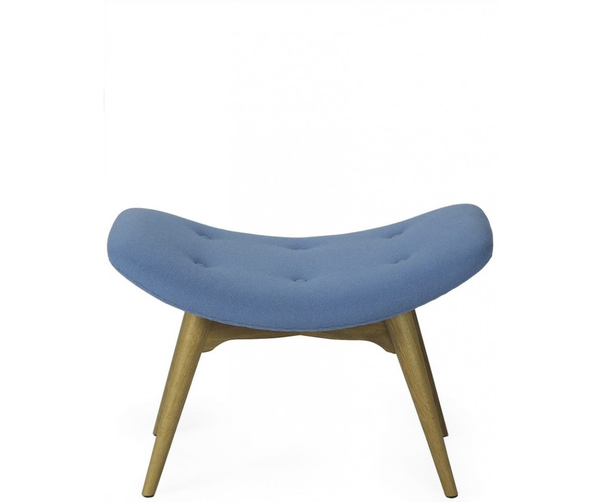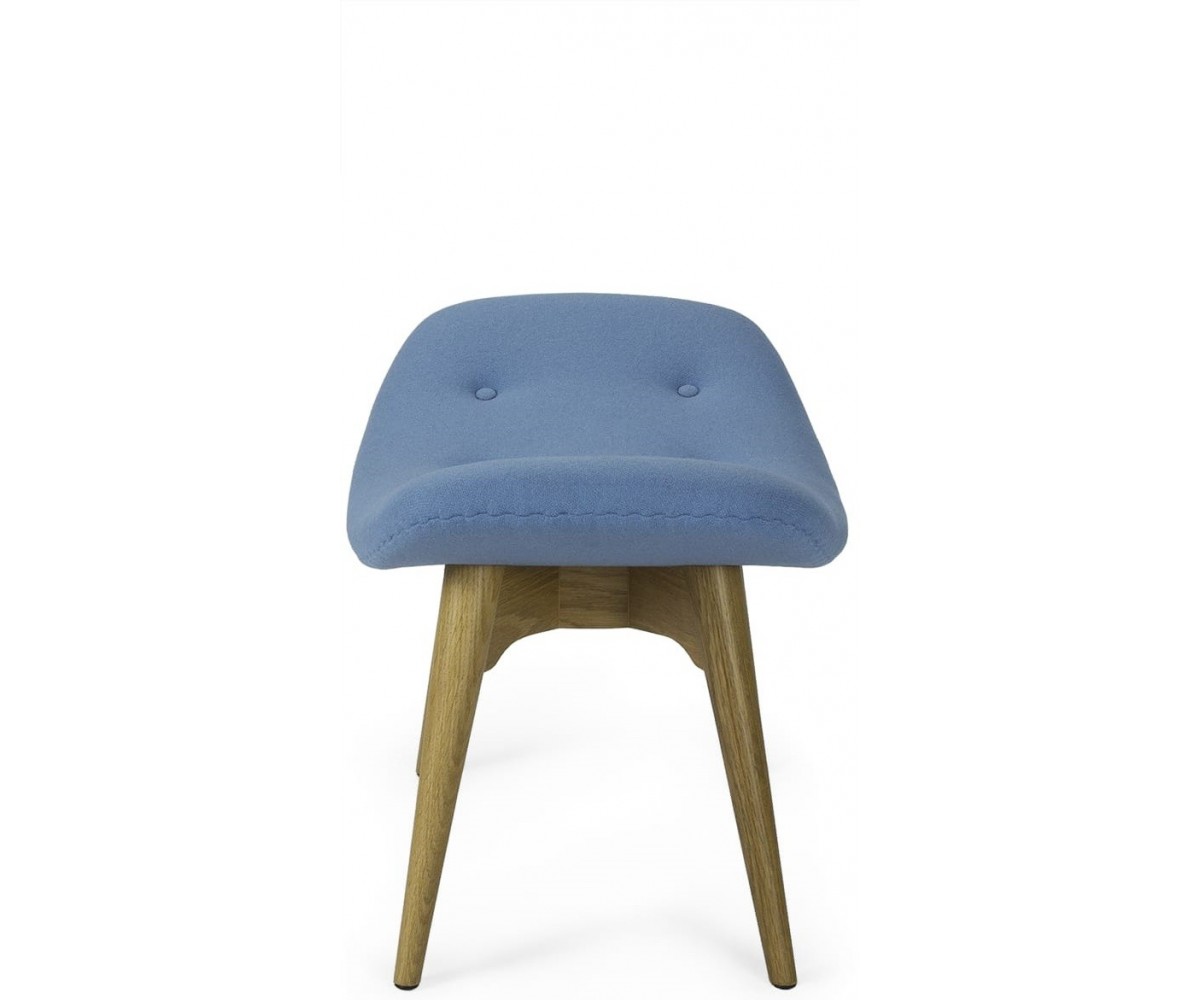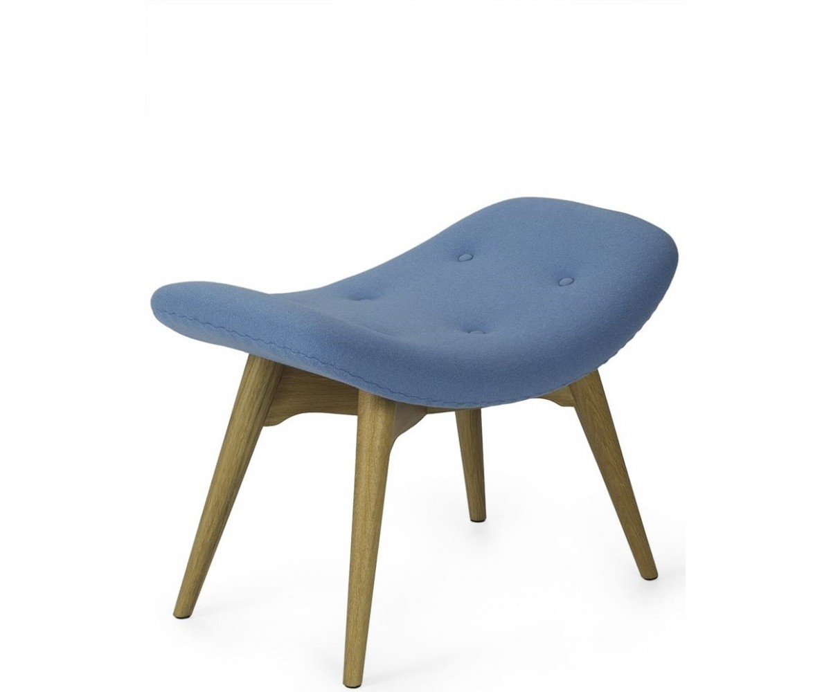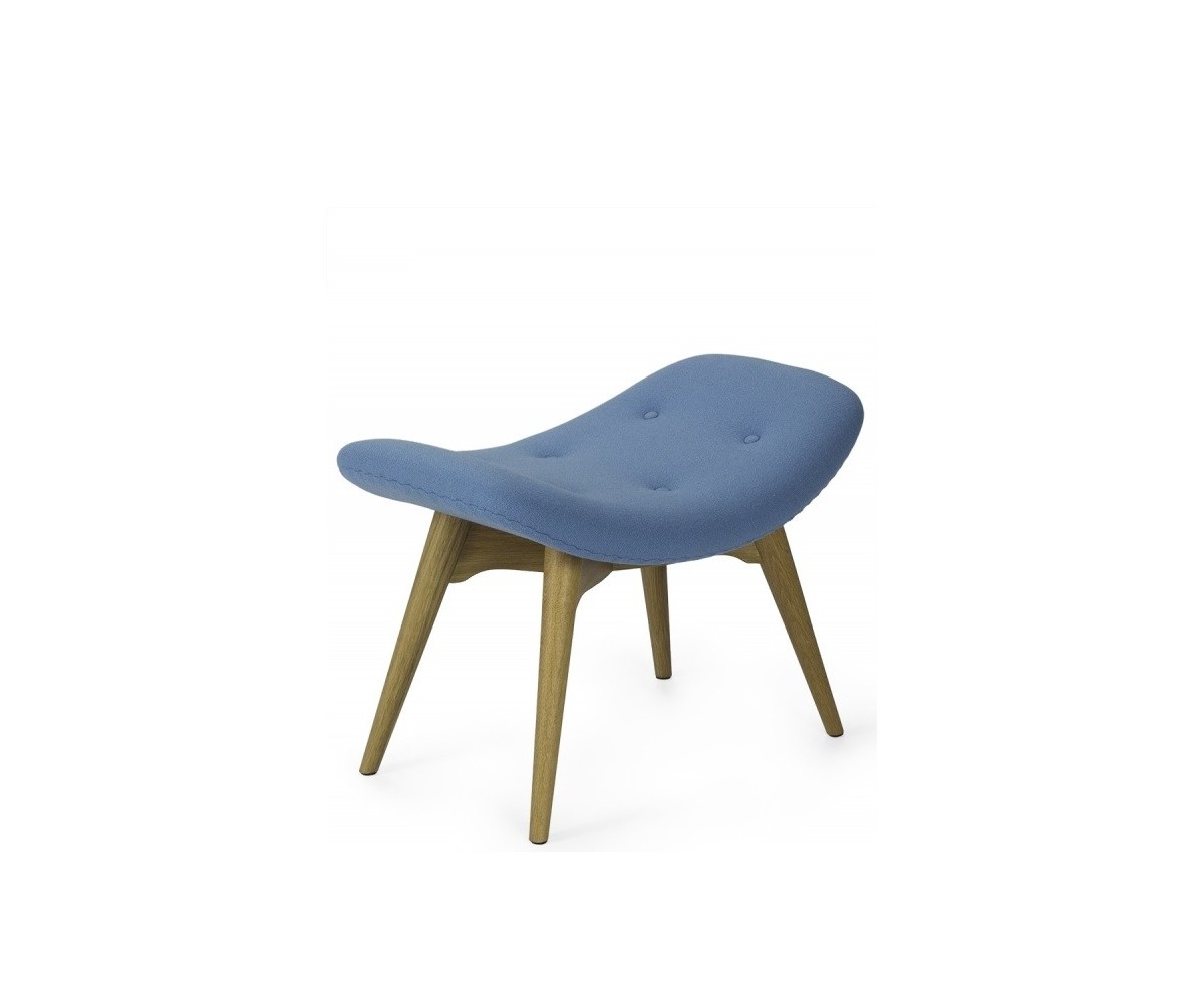 Ottoman inspirado en un diseño de Grant Featherston. Está fabricado con una cáscara de fibra de vidrio de calidad premium, tapicería 100% lana de cashmere y las patas de madera maciza de nogal claro americano. Gran atención a los detalles de las costuras de los botones. Réplica exacta con materiales originales de máxima calidad.