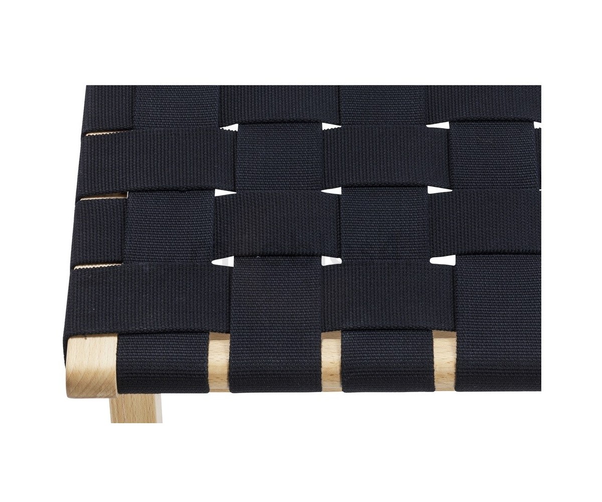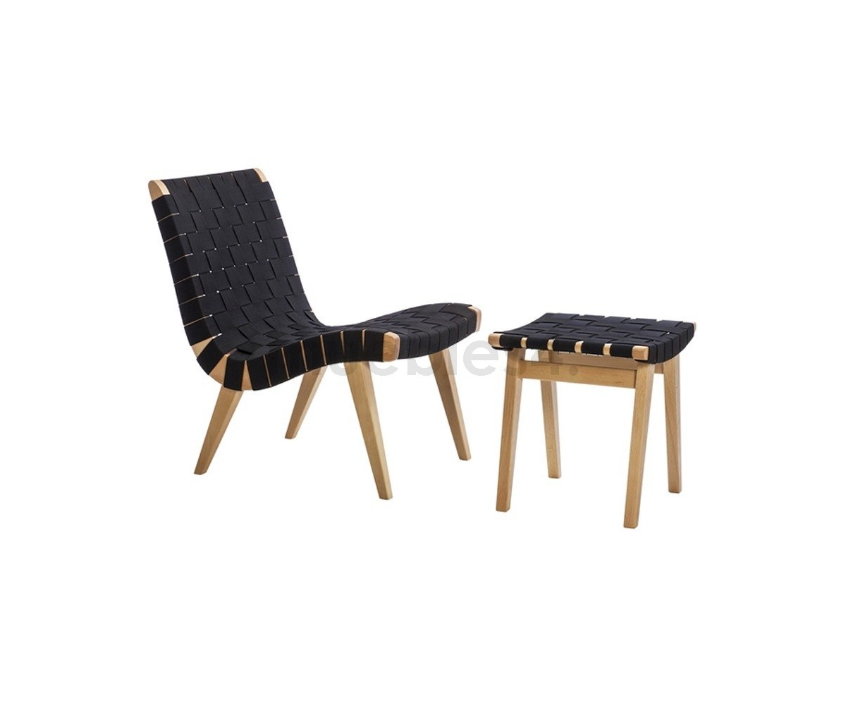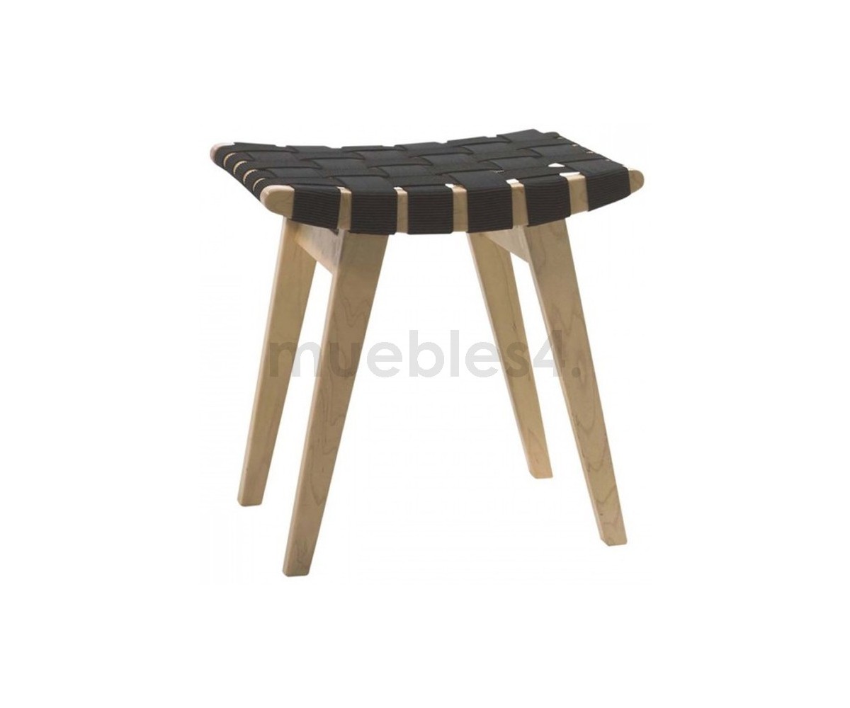 Ottoman inspirado en un diseño de Jens Risom. Realizada en madera de roble americano y correas 100% algodón de gran resistencia, color negro. También disponible en sillón. Réplica exacta con materiales originales de máxima calidad.